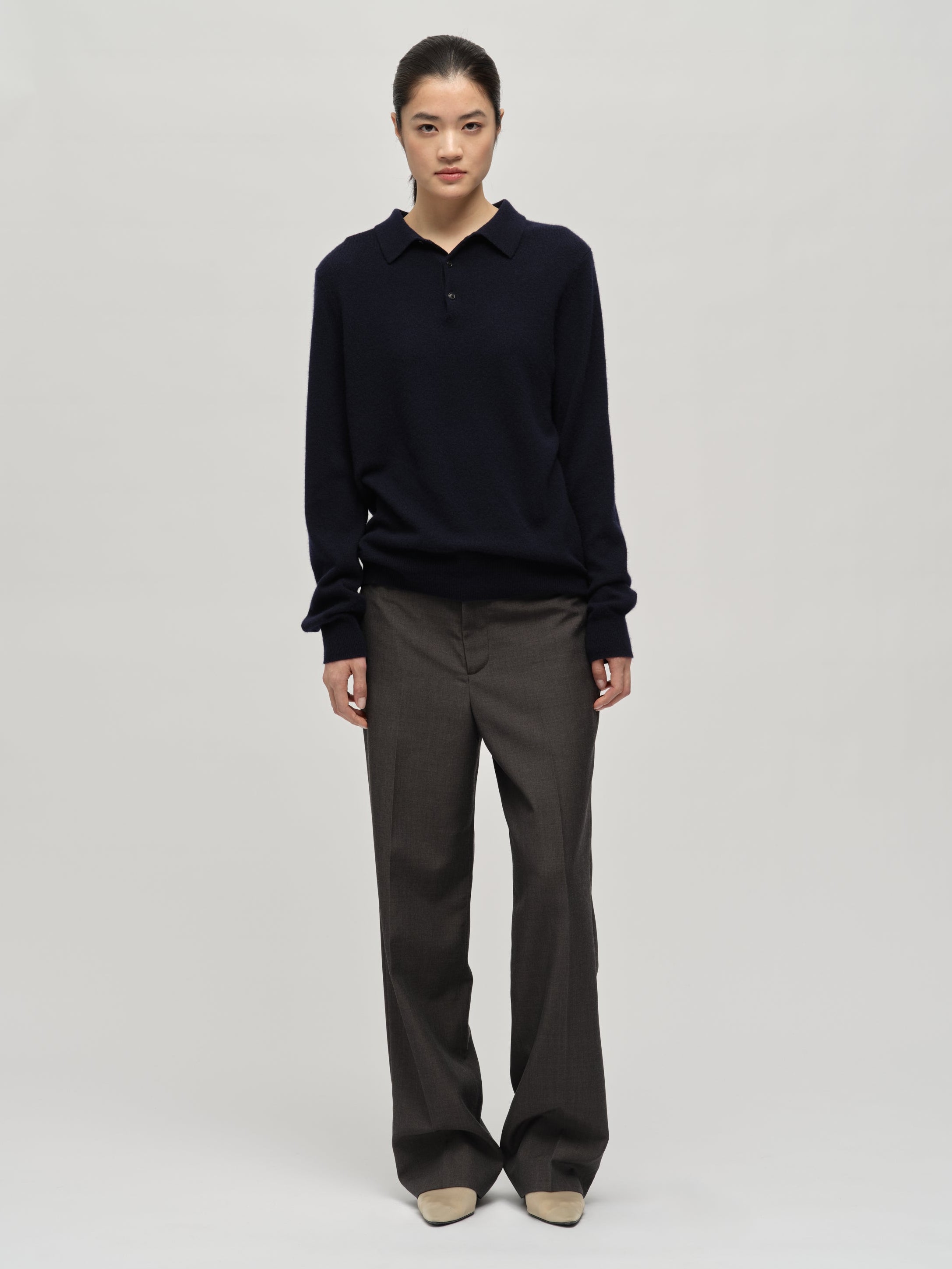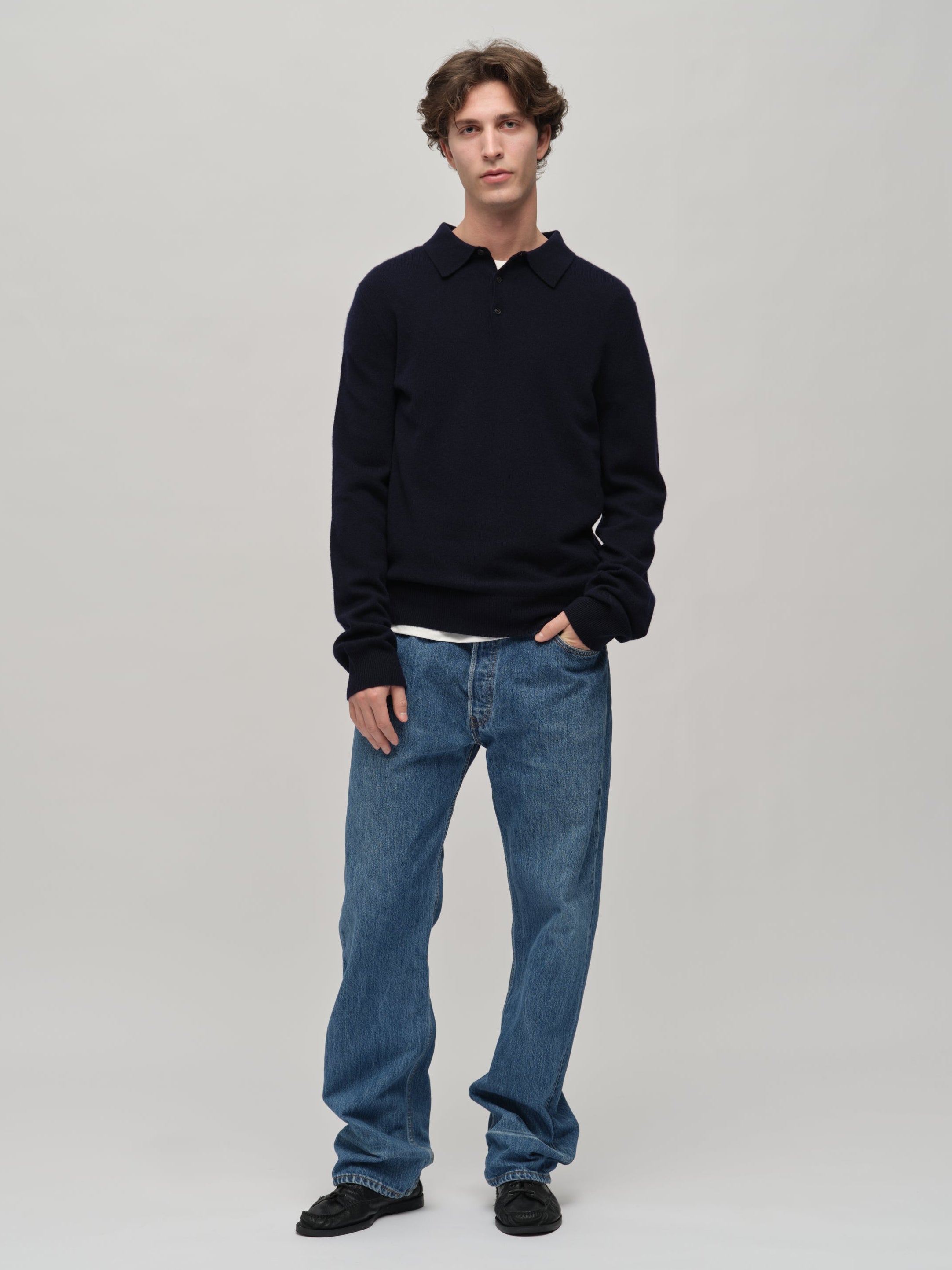 Knitted in 10-gauge cashmere, the Original Polo in Navy Blue is crafted from 100% Grade A Inner Mongolian cashmere for exceptional softness and durability. With its relaxed, boxy silhouette, this unisex style offers a laid-back yet refined look. Designed to resist pilling and hold its shape, it’s a versatile piece to wear season after season.