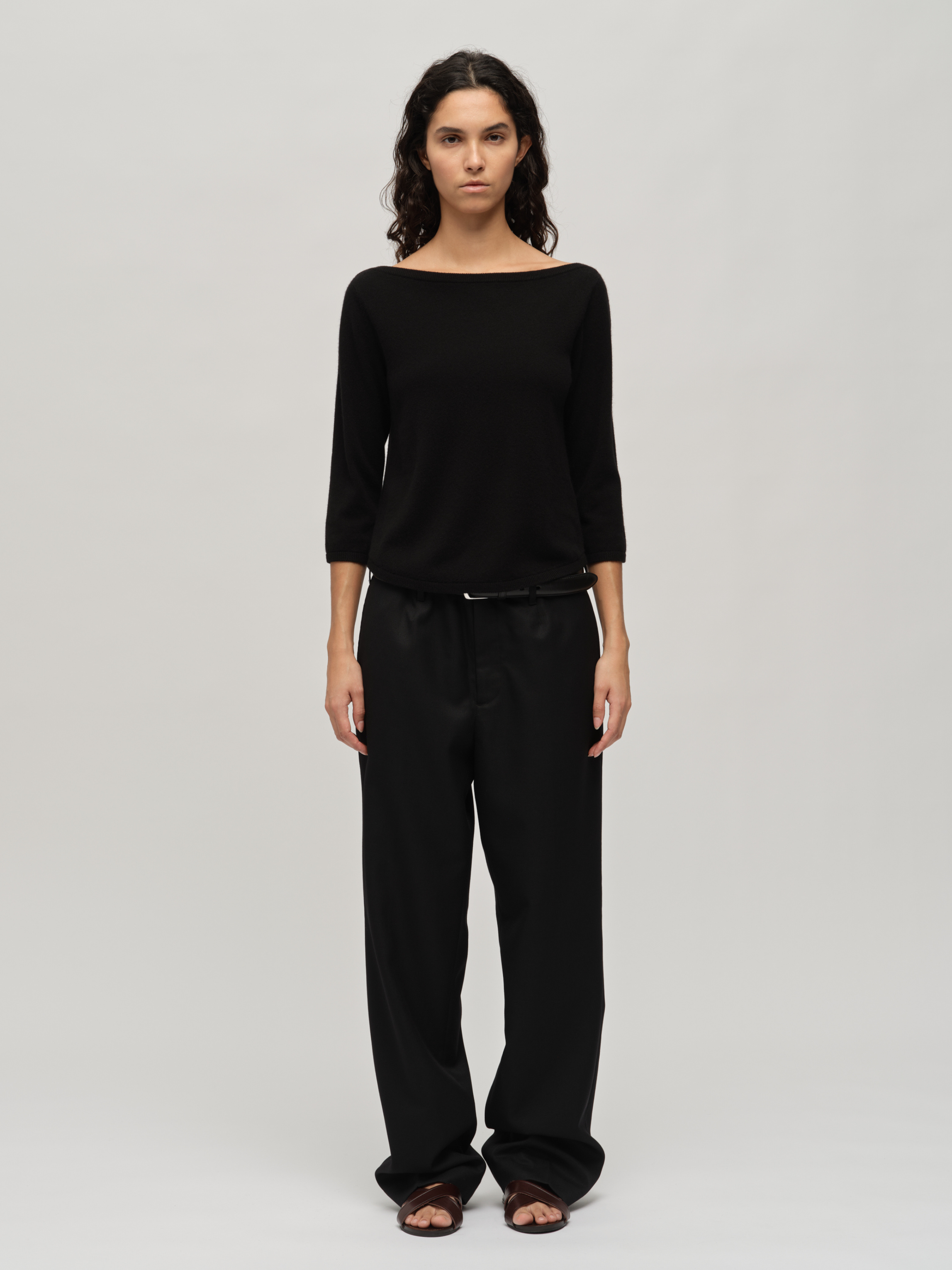 Crafted from 100% cashmere, 10-gauge knit, the Women’s Boat Neck in Black combines luxurious softness with a lightweight, refined texture. Its classic boat neckline frames the collarbone, adding a touch of effortless elegance to any look. Cut in a regular fit, it balances timeless elegance with everyday comfort, making it a versatile wardrobe essential.