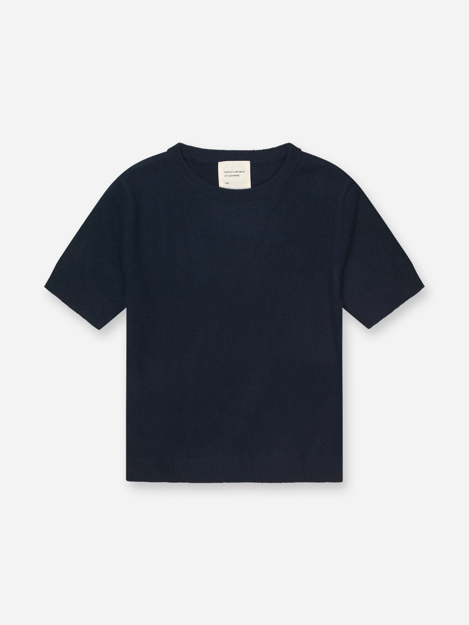 Knitted in 12-gauge cashmere, the Women's Blouse in Navy Blue is crafted from 100% Grade A Inner Mongolian cashmere for exceptional softness and durability. Featuring a laid-back, cropped, and boxy silhouette, this blouse offers a relaxed yet sophisticated look. The short sleeves make it a versatile piece, perfect for year-round wear. Designed to resist pilling and hold its shape, it’s a timeless addition to any wardrobe, combining effortless style with premium quality.