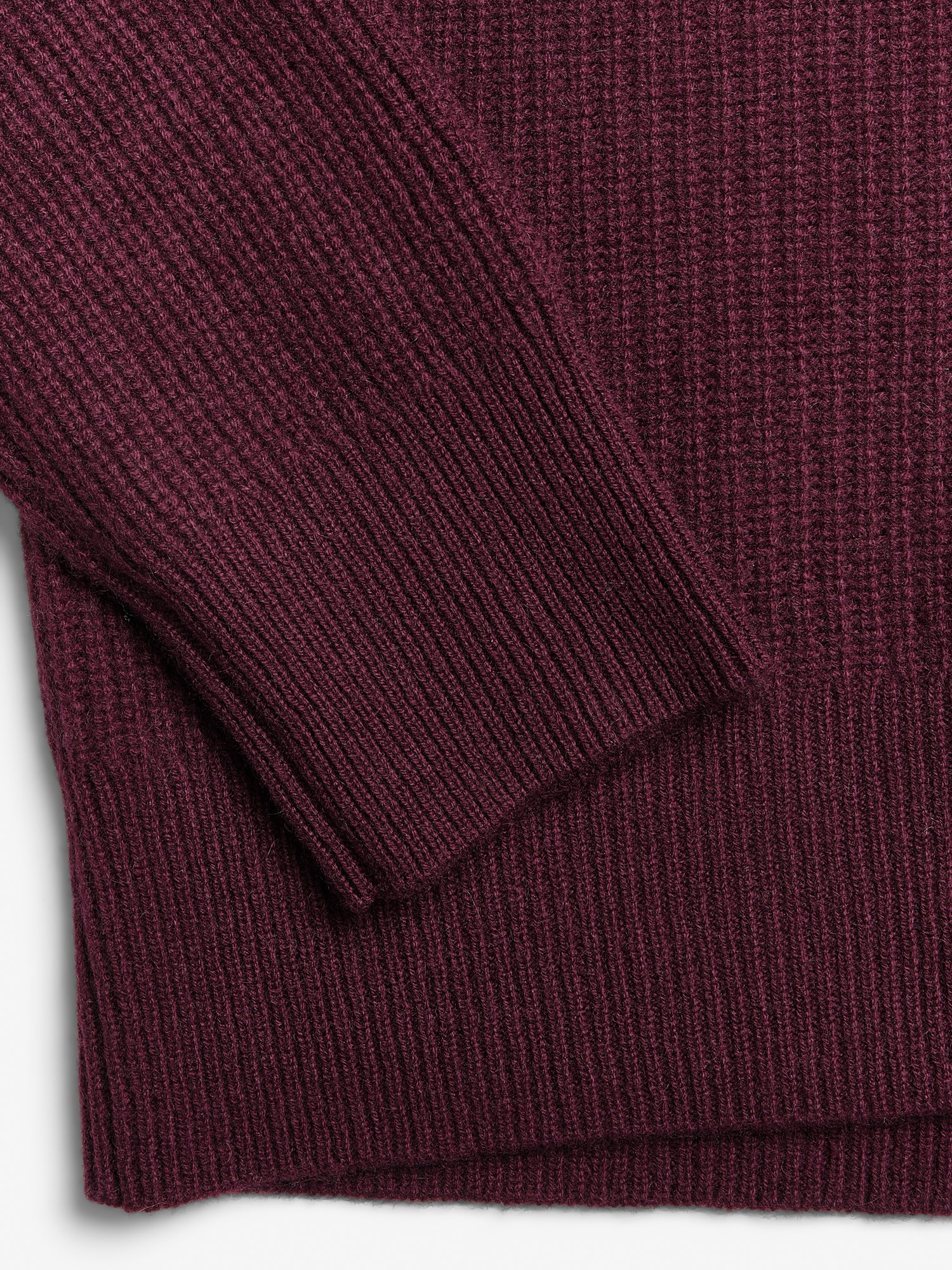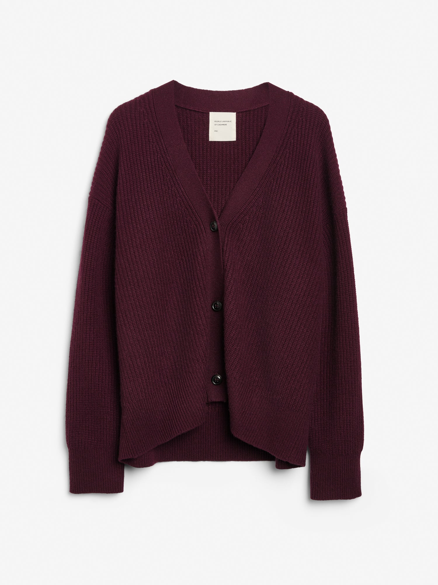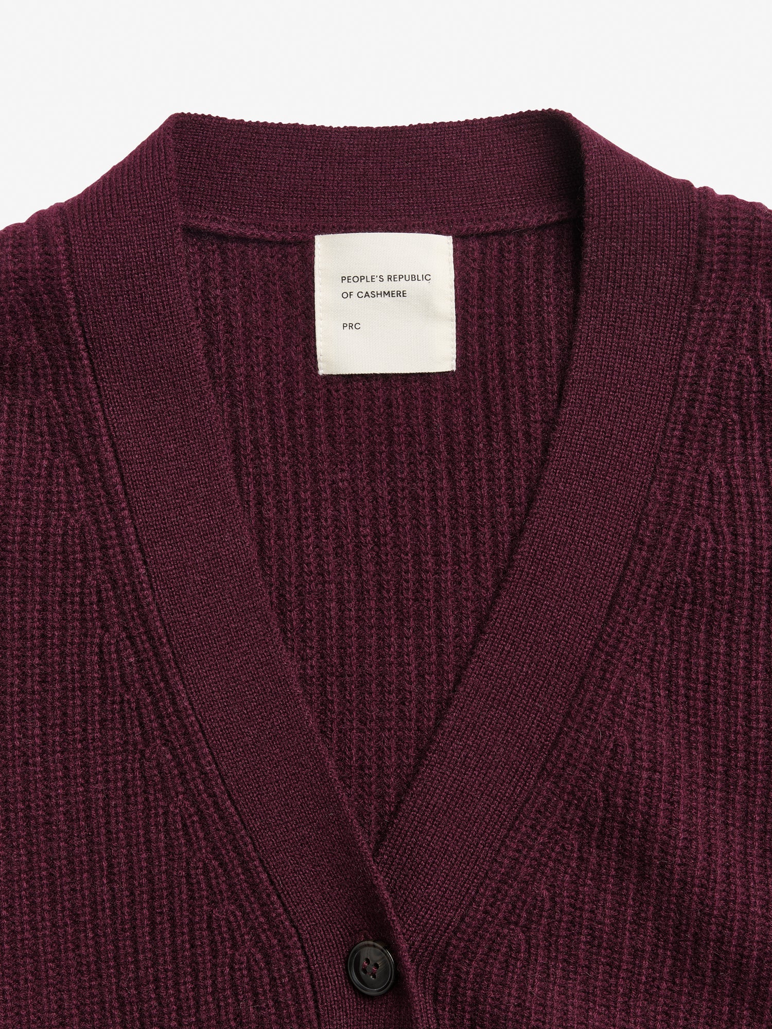 Knitted in 7-gauge cashmere, the Premium Ribbed Cardigan in Bordeaux is crafted from 100% Grade A Inner Mongolian cashmere for exceptional softness and durability. Featuring a luxurious chunky texture and heavy rib detailing, this cardigan combines timeless elegance with cosy comfort. Its relaxed, slightly oversized fit makes it a versatile piece, perfect for layering during cooler months. Designed to resist pilling and hold its shape, it’s a sophisticated addition to any wardrobe, offering both style and warmth season after season.