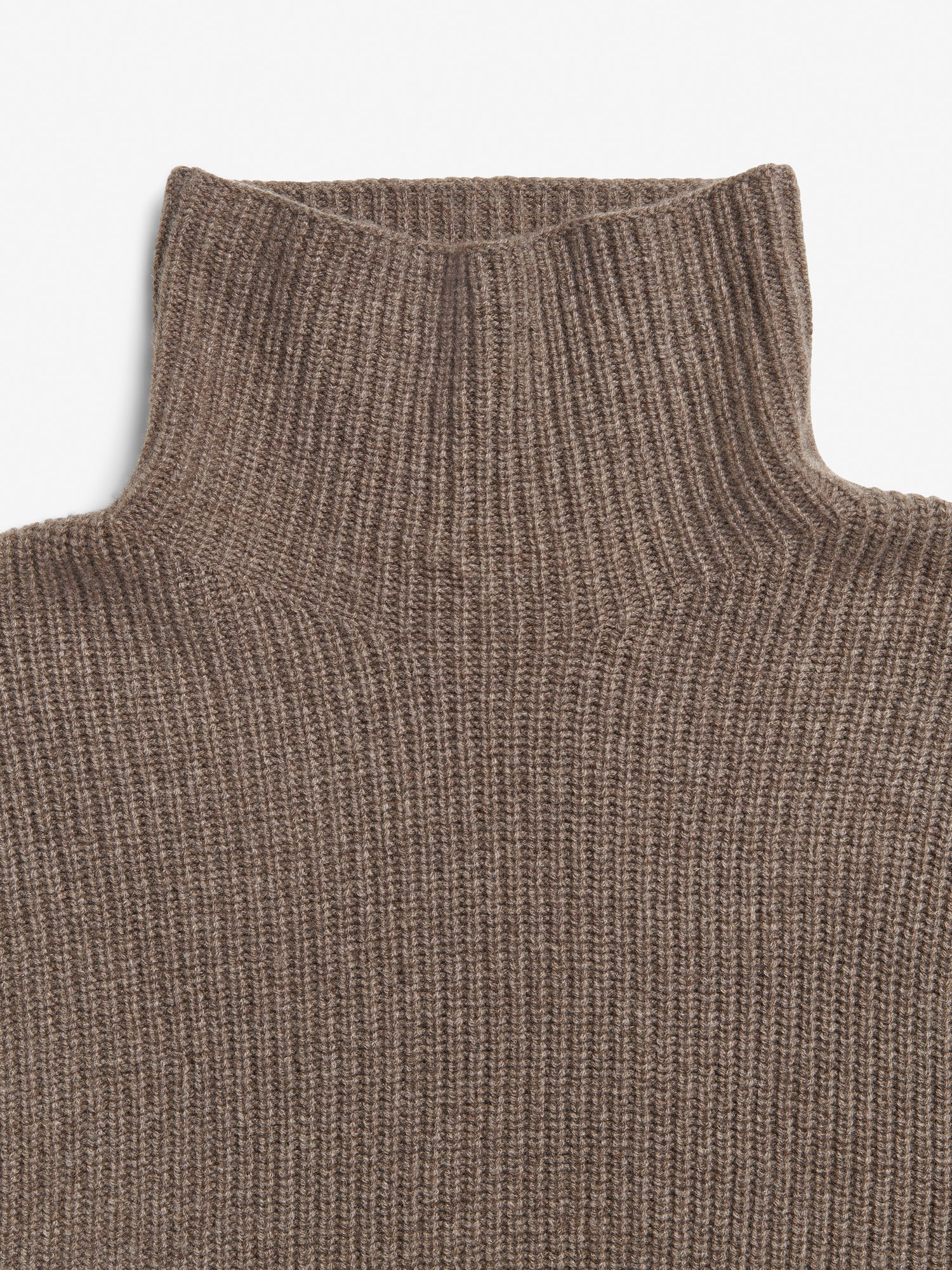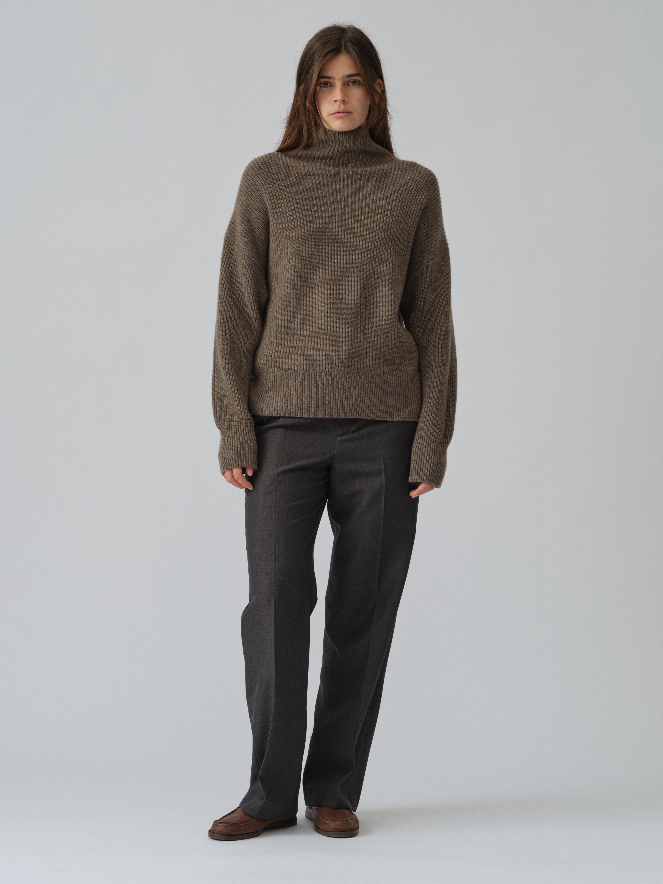 Knitted in 7-gauge cashmere, the Premium Ribbed Turtleneck in Truffle is crafted from 100% Grade A Inner Mongolian cashmere for exceptional softness and durability. Featuring a luxurious chunky texture and a high neck, this turtleneck combines timeless elegance with practical warmth. Its relaxed, slightly oversized fit makes it a versatile piece, perfect for layering during the cooler months. Designed to resist pilling and hold its shape, it’s a sophisticated addition to any wardrobe, offering both style and comfort season after season.