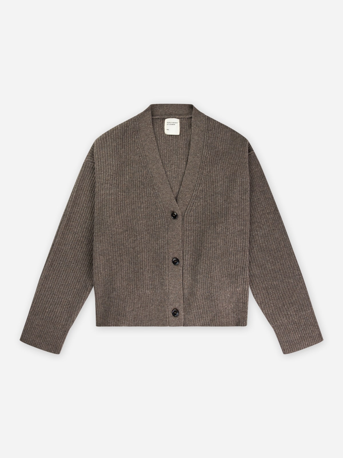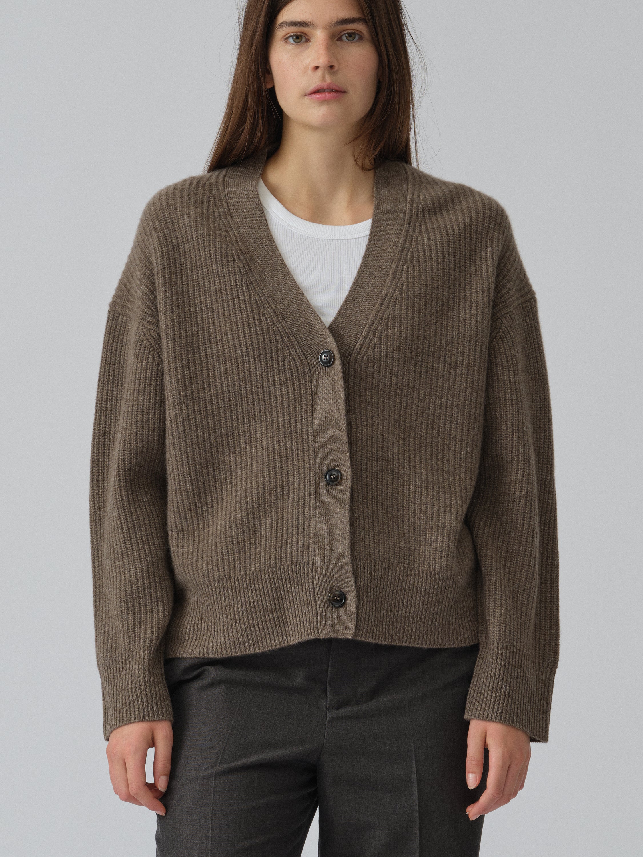 Crafted from 100% Grade A Inner Mongolian cashmere in a chunky 7-gauge knit, the Premium Ribbed Cardigan in Truffle offers a luxurious, cosy texture with heavy rib detailing. Its relaxed, slightly oversized fit combines timeless elegance with warmth. Expertly knitted to resist pilling and maintain its shape, this cardigan is a lasting wardrobe investment.