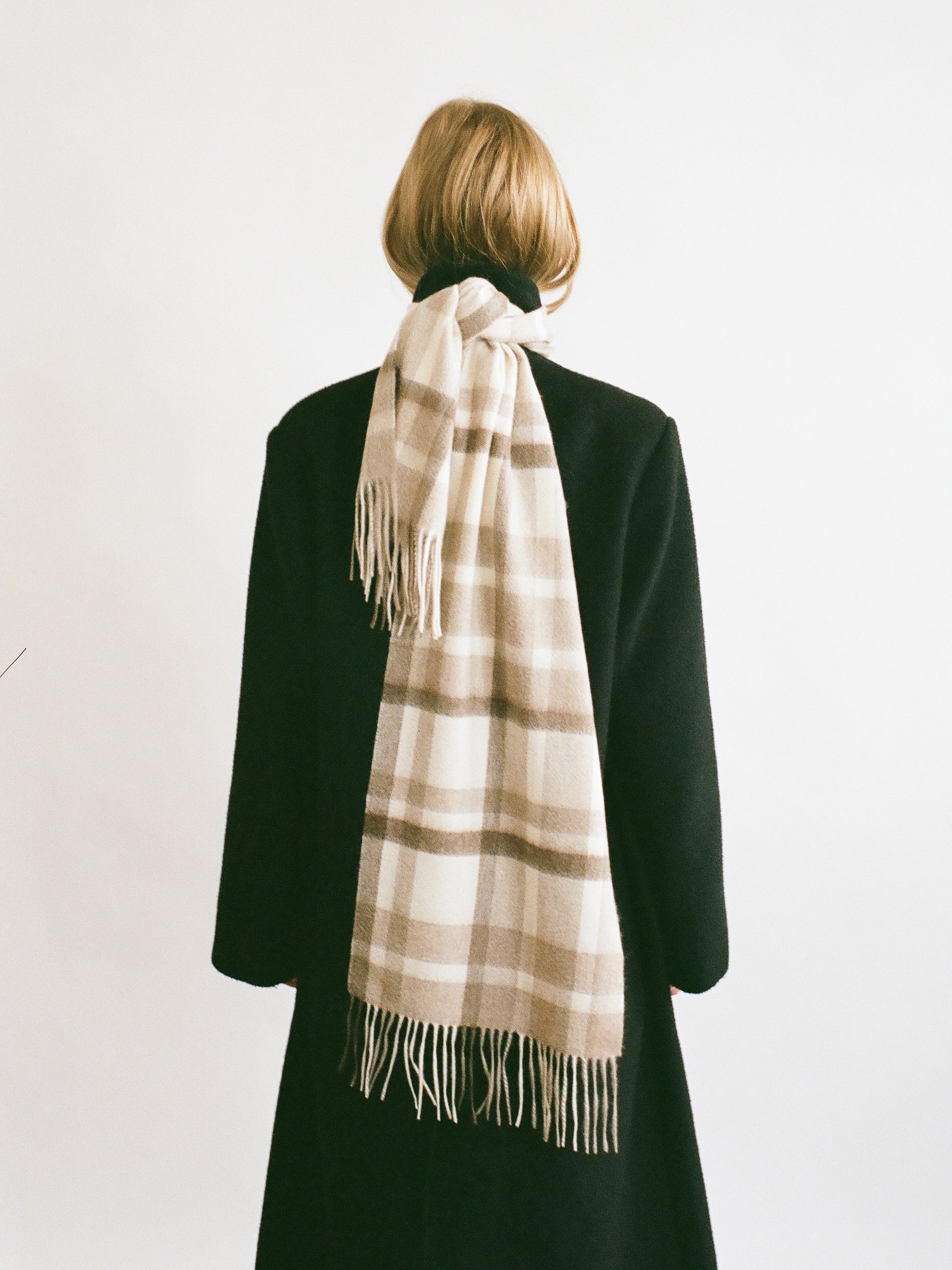 Crafted from 100% premium cashmere, the Cashmere Woven Scarf in Checked Sand is luxuriously soft, lightweight, and gentle against the skin. Its smooth, slightly shiny finish ensures lasting comfort and durability season after season. Fringed at the ends, this scarf pairs beautifully with any outfit, adding a subtle, sophisticated accent. Its versatile shape allows for a range of styling options, whether draped effortlessly over the shoulders, wrapped snugly around the neck, or layered with outerwear for added warmth.