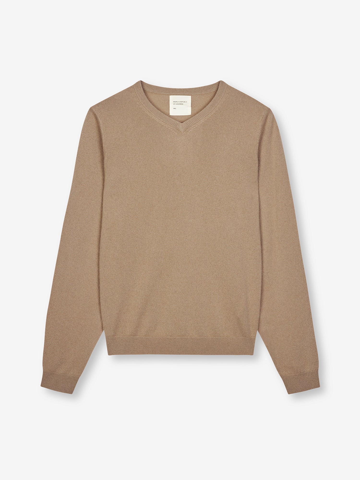 Crafted from 100% Grade A cashmere in a 12-gauge knit, the Women's Fitted 90s V-Neck in Taupe features a clean V-neckline and a softly contoured silhouette that flatters without feeling tight. Inspired by 90s minimalism, it brings a modern edge to a timeless shape, perfect for layering or wearing on its own. A versatile piece designed for effortless, everyday elegance.