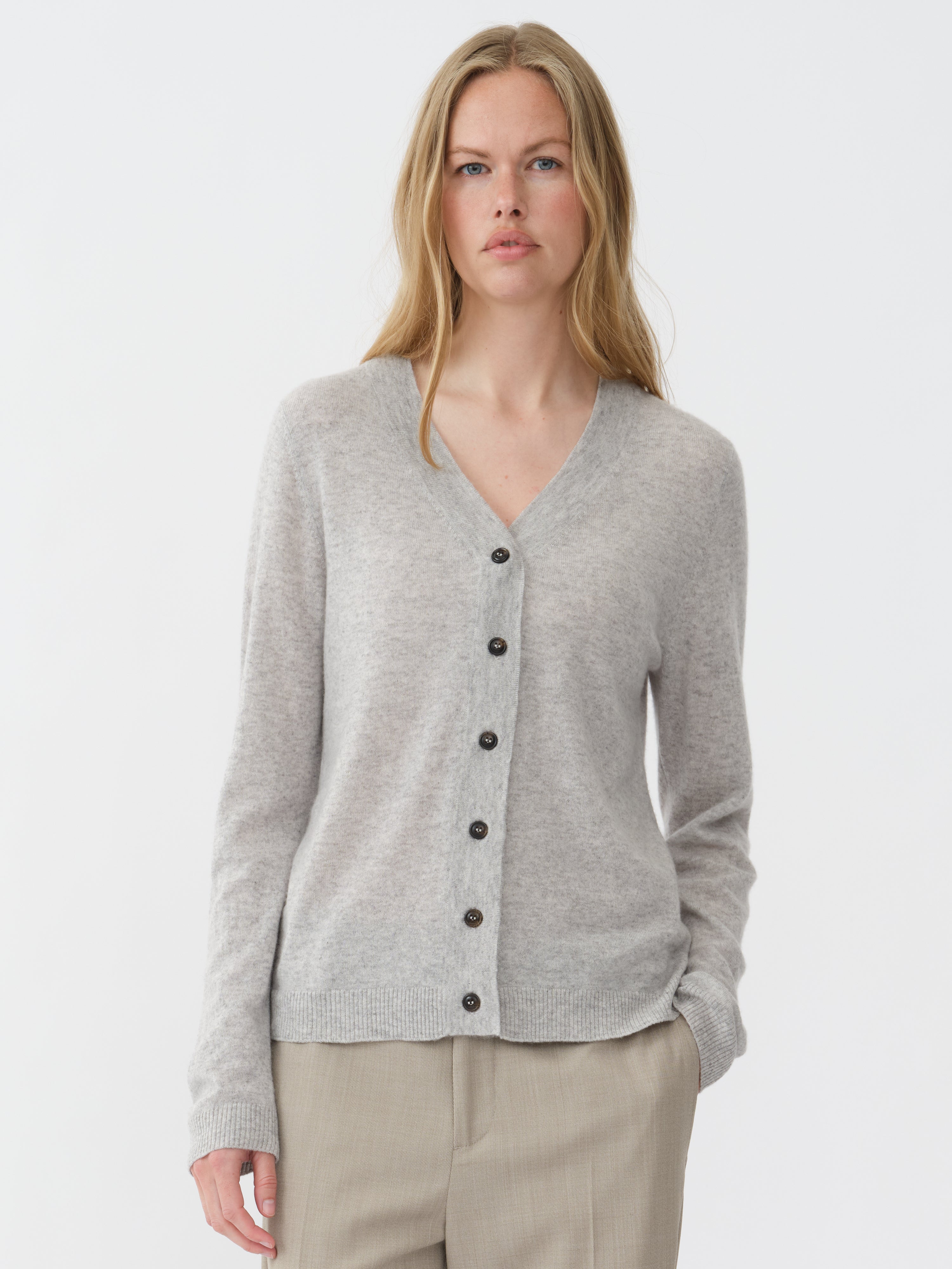 Wrap yourself in pure luxury with the new Air V-Cardigan in Grey. Crafted from 100% super-fine cashmere, this cardigan redefines softness. It's so light and airy, you'll hardly know you're wearing it, yet it provides the perfect touch of warmth.