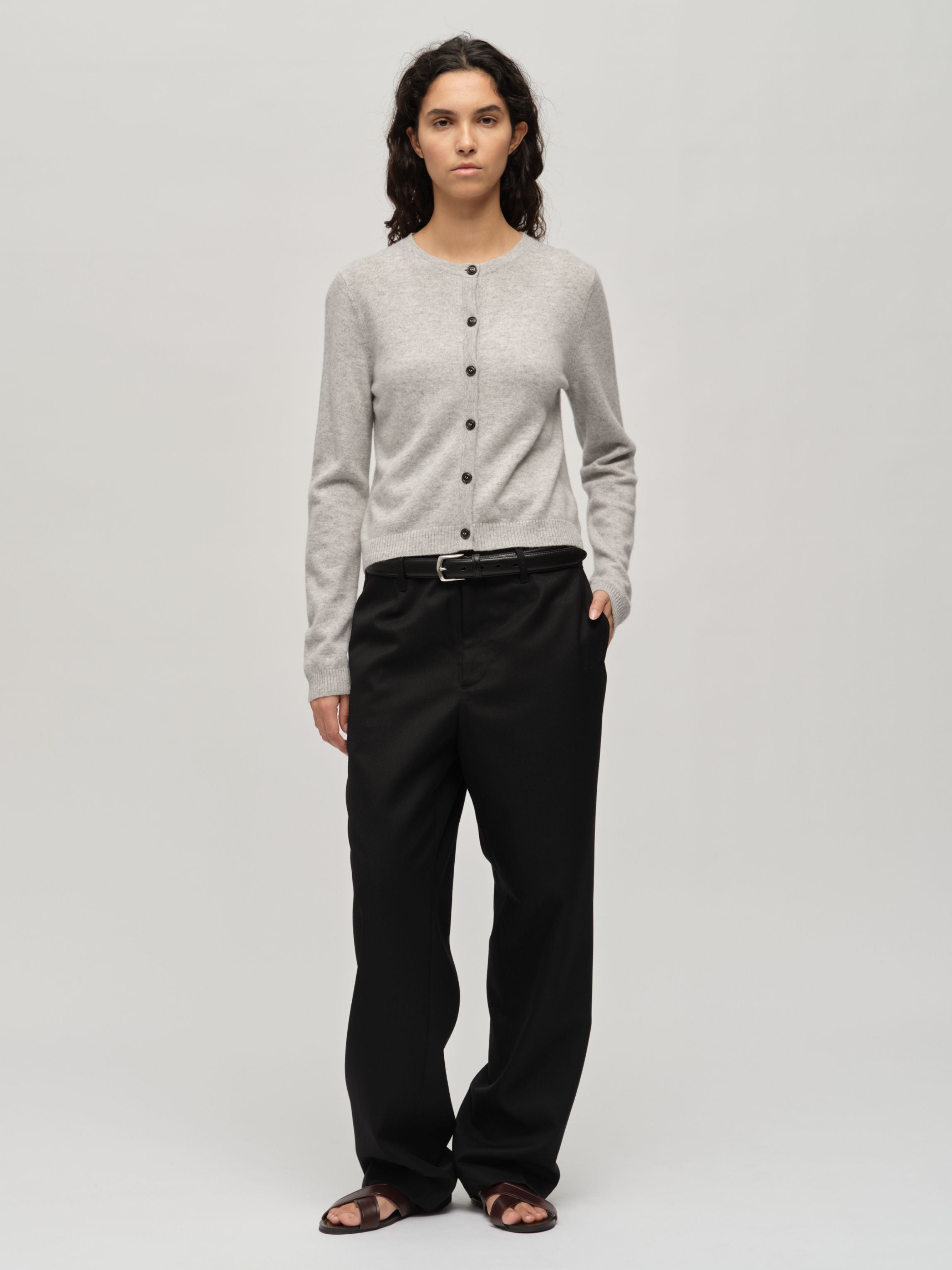 Our Women's O-Cardigan sweater in Ash Grey is made of 100% premium quality cashmere - Inner Mongolian cashmere (Grade A). It is a long-awaited timeless piece that combines comfort and luxury. A very classic, fitted cardigan with a snug round neckline, made from 12 gauge cashmere. Tightly knitted to minimize pilling and retain its shape over time, it's a valuable investment for any wardrobe.