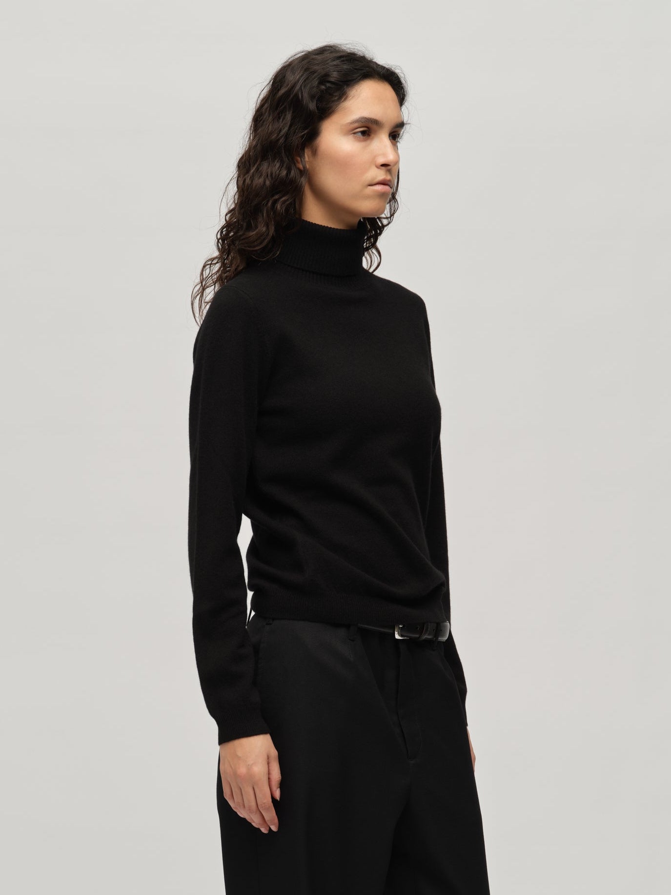Crafted from 100% Grade A Inner Mongolian cashmere in a 12-gauge knit, this Women’s Turtleneck sweater in Black offers timeless luxury and exceptional comfort. Featuring a slim fit and a snug, high turtleneck, it’s perfect for layering or wearing alone. Expertly knitted to resist pilling and maintain its shape, this sweater is a lasting wardrobe essential.