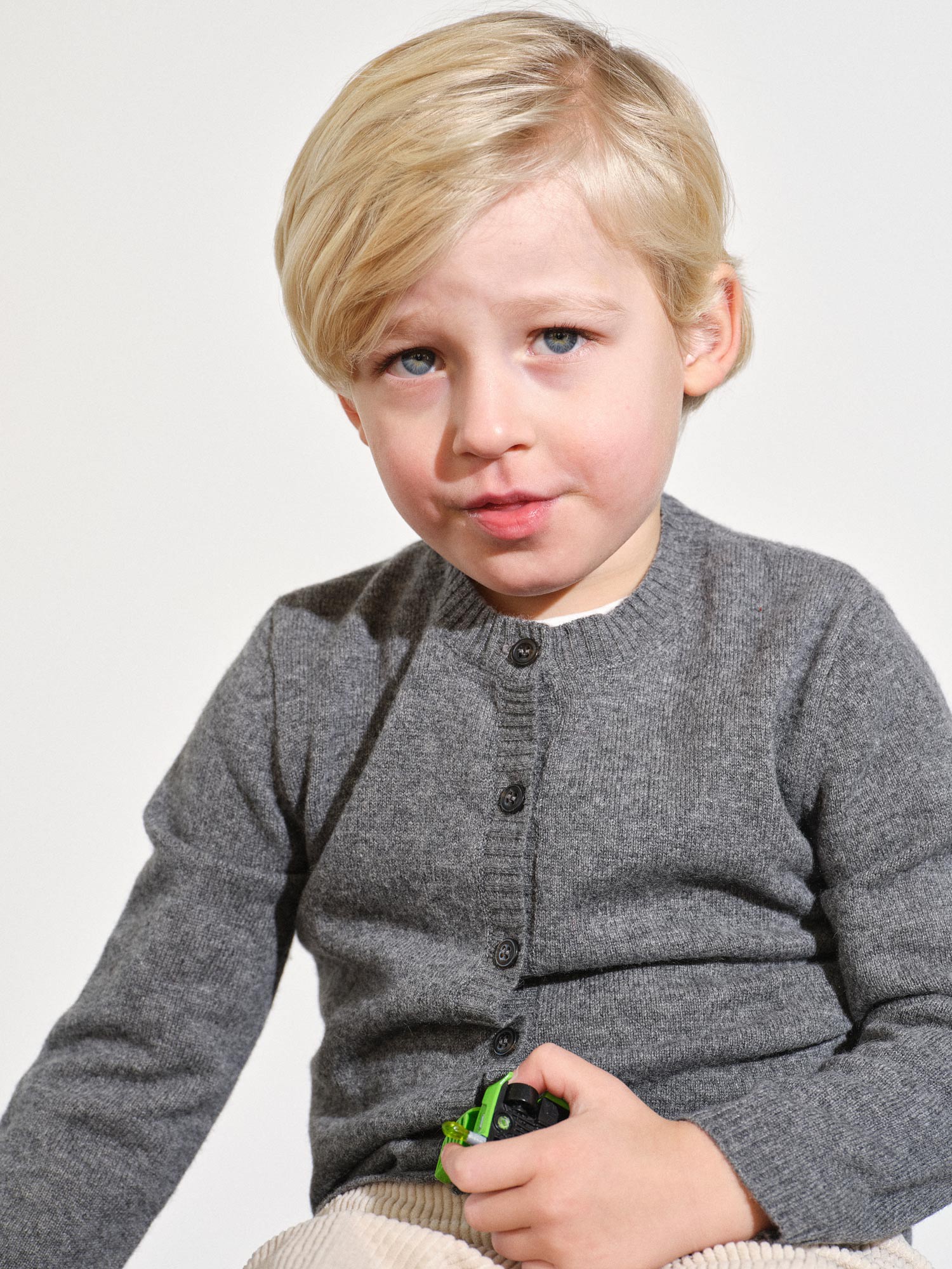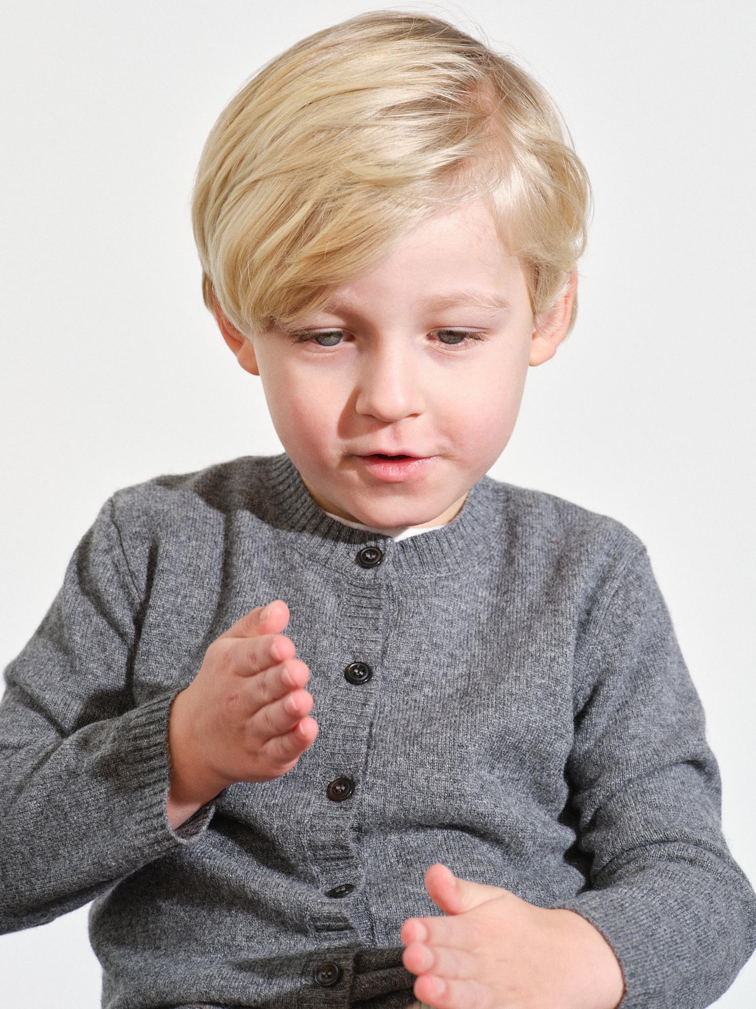 Our Baby Cardigan in Heather Grey is made of 100% premium quality cashmere - Inner Mongolian cashmere (Grade A). It will keep your little one cosy and comfortable. Perfect for colder seasons, these cardigans offer both warmth and style. Tightly knitted to minimize pilling and retain its shape over time, making it a valuable investment for generations.
