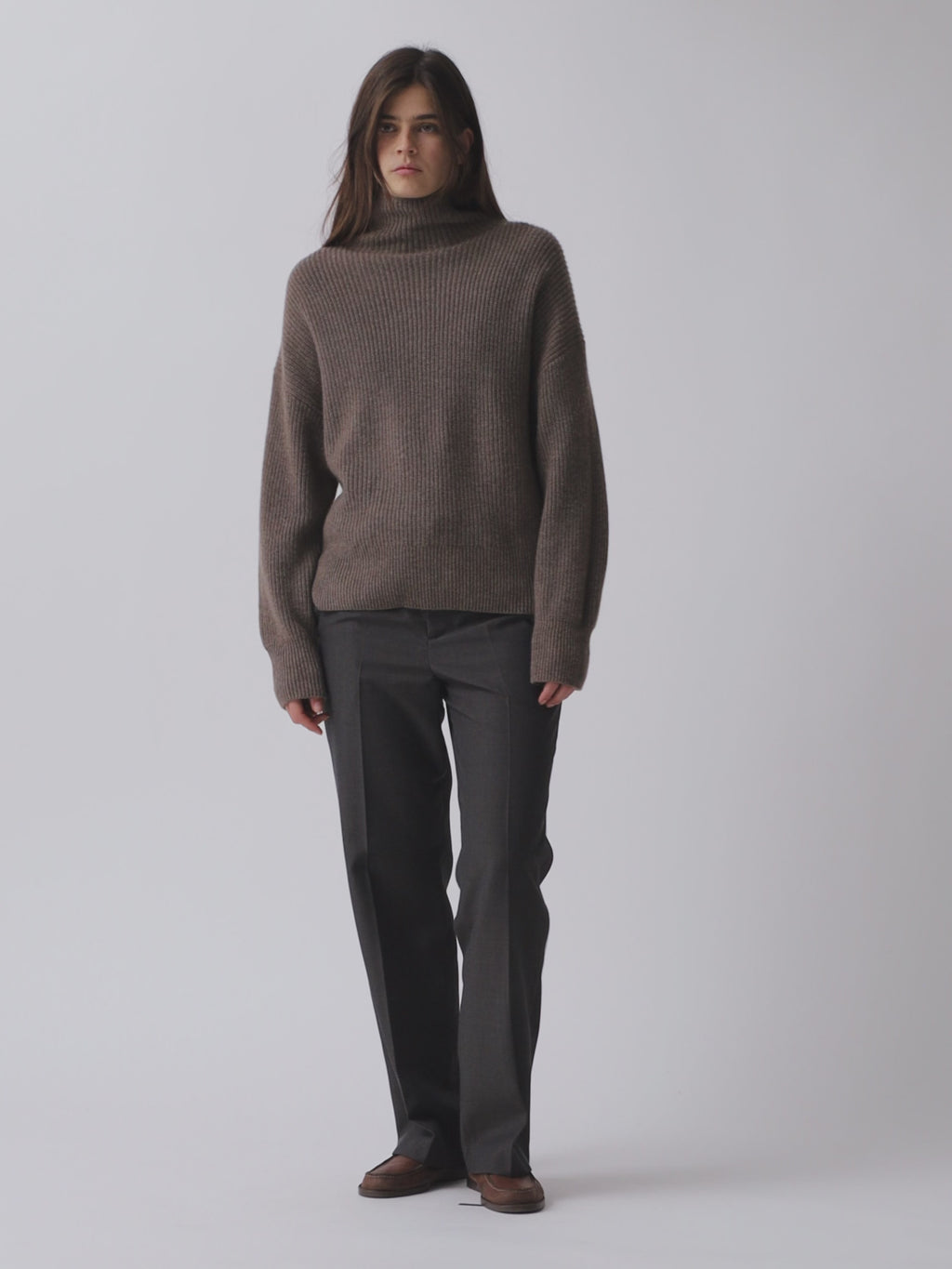 Knitted in 7-gauge cashmere, the Premium Ribbed Turtleneck in Truffle is crafted from 100% Grade A Inner Mongolian cashmere for exceptional softness and durability. Featuring a luxurious chunky texture and a high neck, this turtleneck combines timeless elegance with practical warmth. Its relaxed, slightly oversized fit makes it a versatile piece, perfect for layering during the cooler months. Designed to resist pilling and hold its shape, it’s a sophisticated addition to any wardrobe, offering both style and comfort season after season.