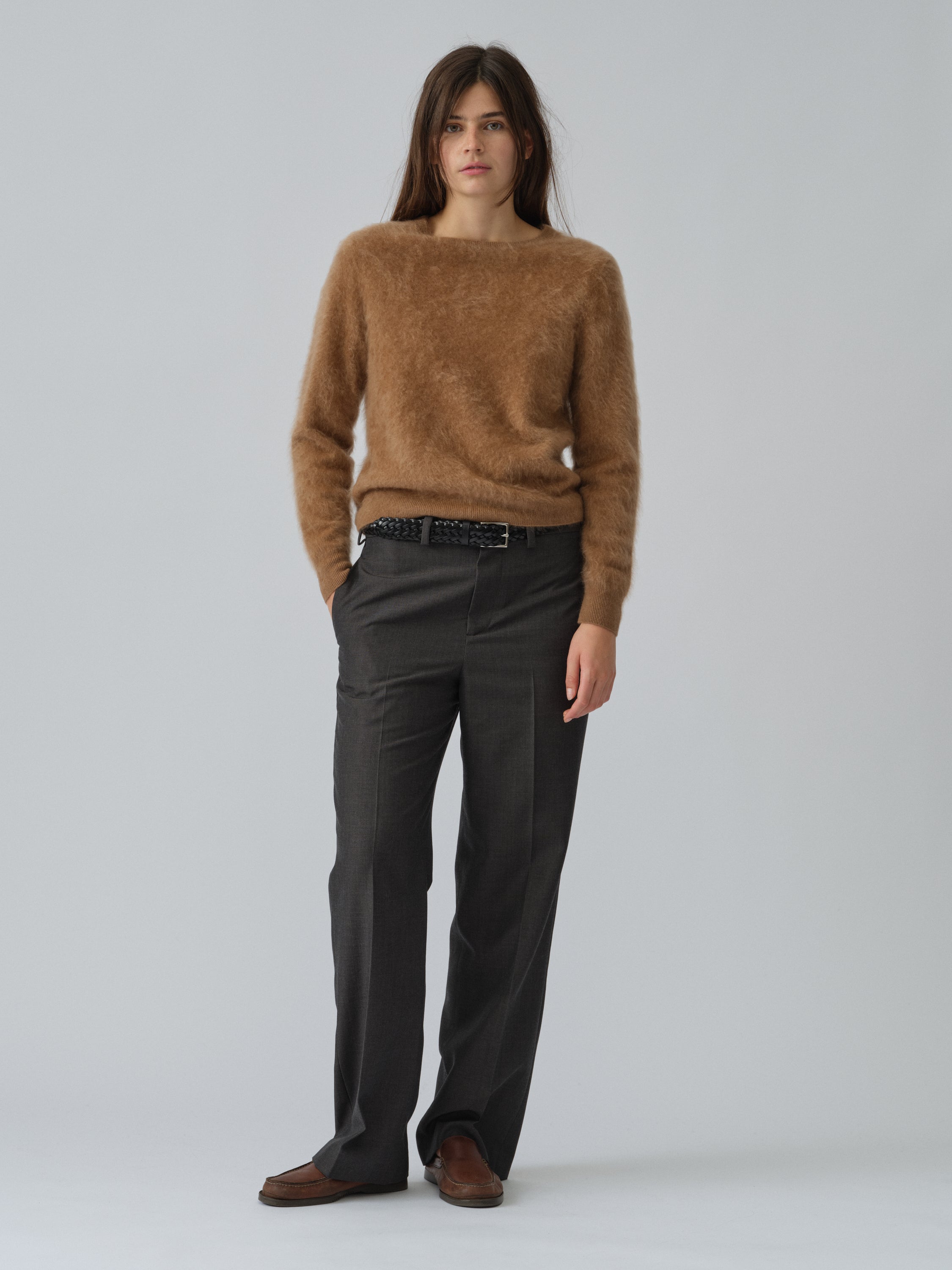 Crafted from 100% Grade A Inner Mongolian cashmere in a 12-gauge knit, the Women’s Brushed Crewneck in Caramel offers exceptional softness and warmth. The brushed cashmere finish gives this sweater a luxuriously plush feel, while the classic round neckline, ribbed hem, and cuffs provide a refined, polished look. Designed in a regular fit that stays true to size, it’s a timeless essential that combines comfort with understated elegance.