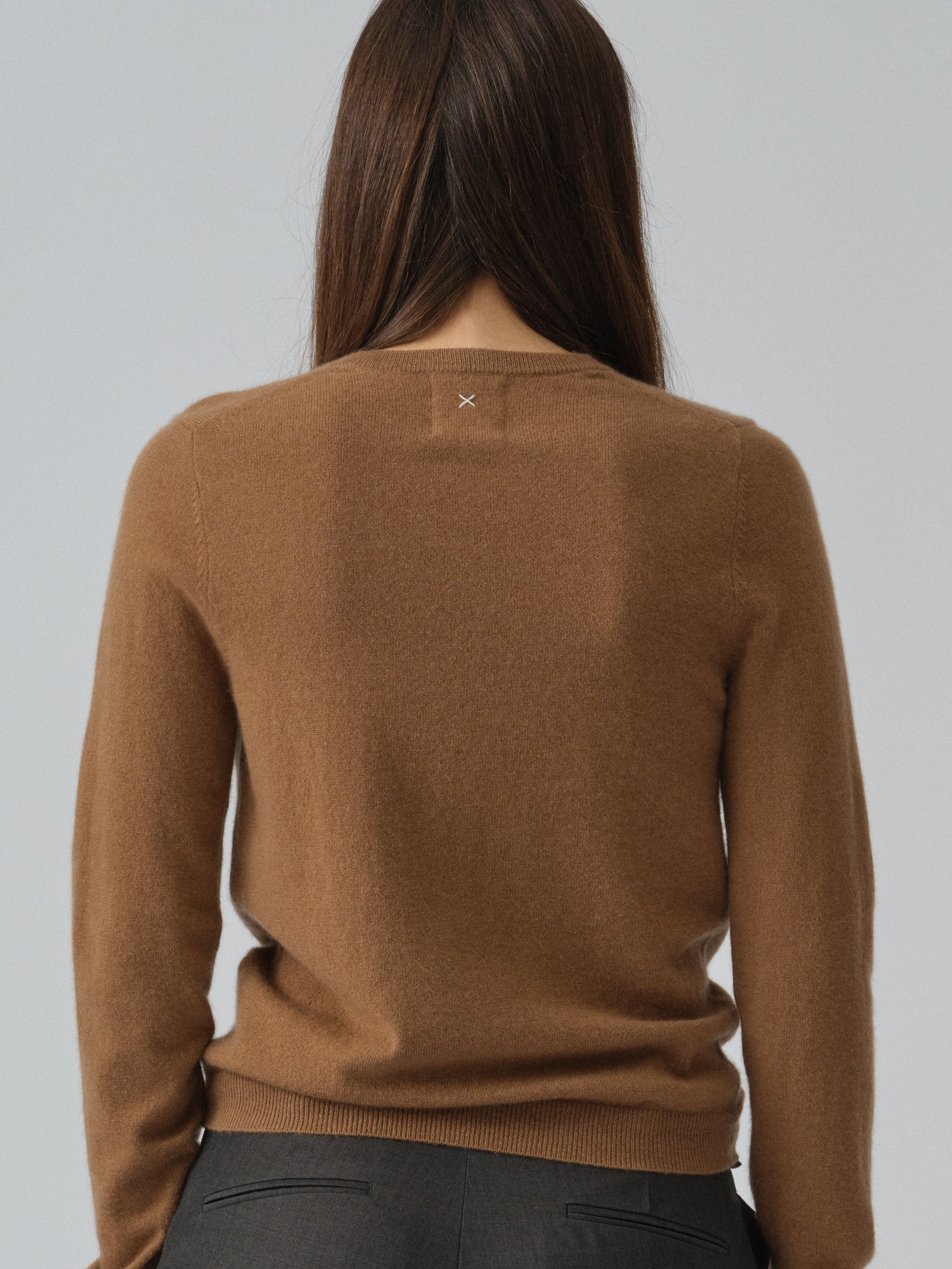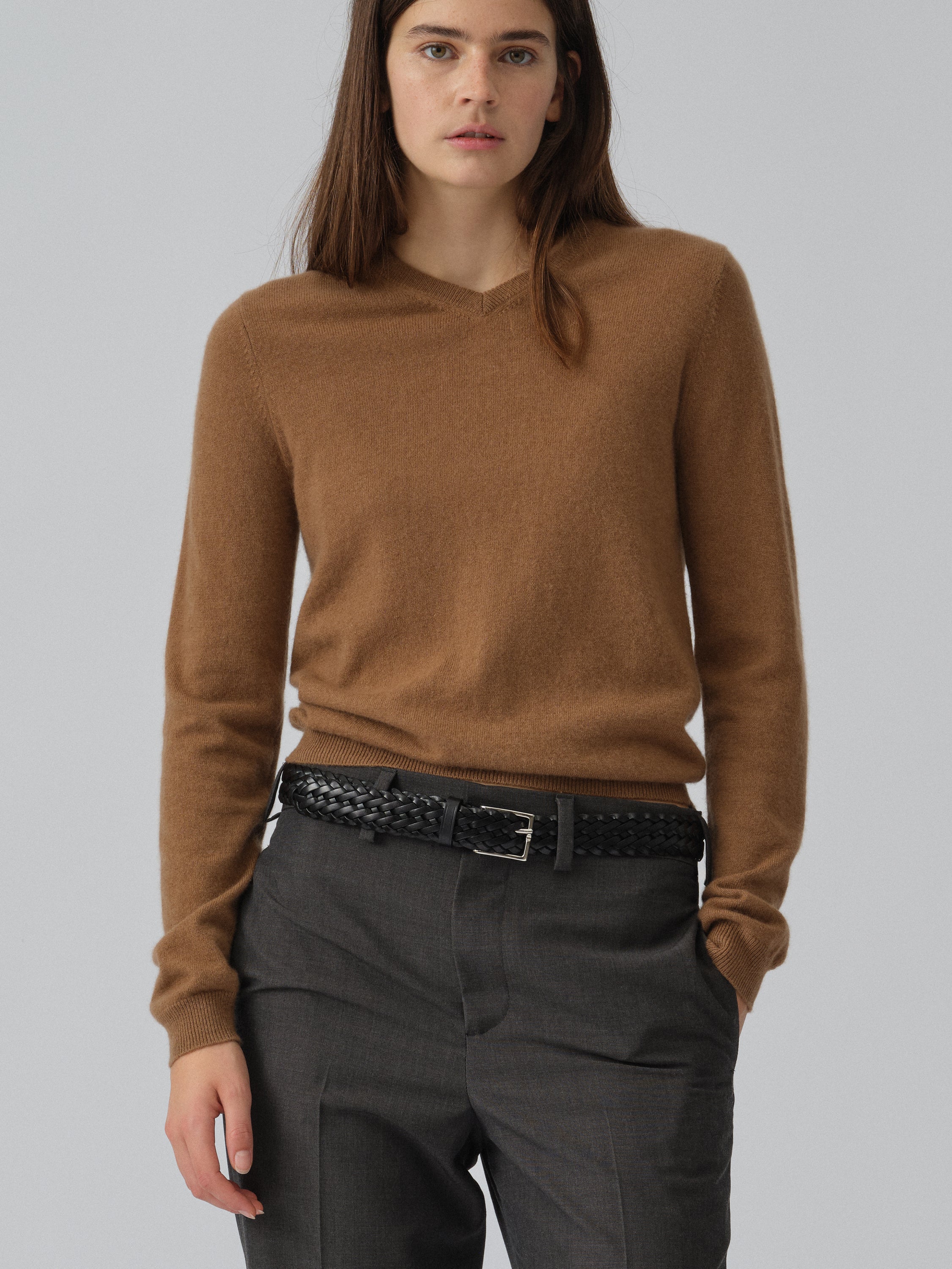 Crafted from 100% Grade A cashmere in a 12-gauge knit, the Women's Fitted 90s V-Neck in Caramel features a clean V-neckline and a softly contoured silhouette that flatters without feeling tight. Inspired by 90s minimalism, it brings a modern edge to a timeless shape, perfect for layering or wearing on its own. A versatile piece designed for effortless, everyday elegance.