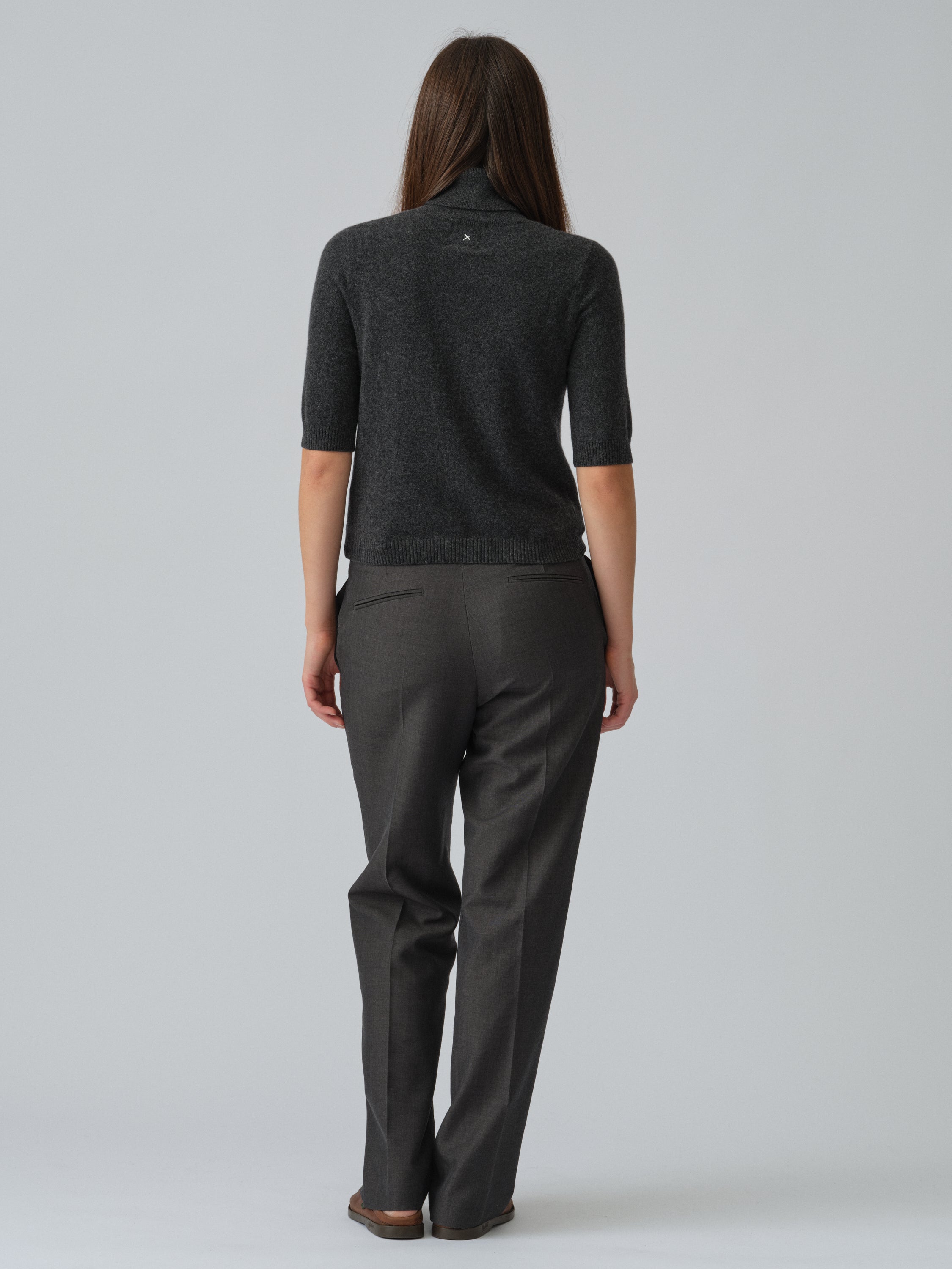 Crafted from 100% Grade A Inner Mongolian cashmere in a 12-gauge knit, the Women's Turtleneck Blouse in Dark Grey features a ribbed turtle neckline and a smooth, soft finish for ultimate comfort. Designed with three-quarter sleeves and a cropped fit, it offers a flattering, feminine silhouette. Lightweight and elegant, this blouse effortlessly elevates any outfit and is a versatile wardrobe essential.