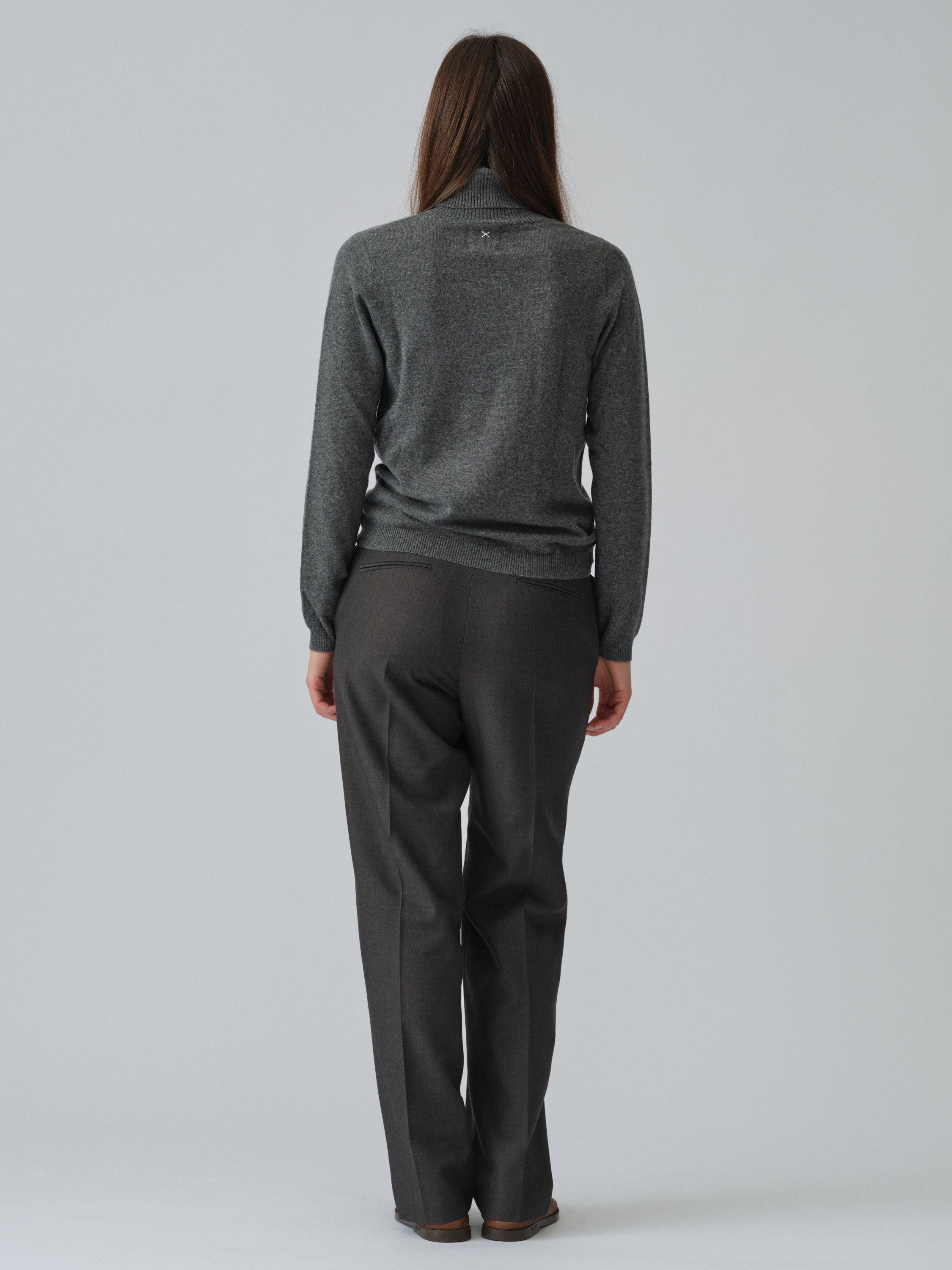 Crafted from 100% Grade A Inner Mongolian cashmere in a 12-gauge knit, this Women’s Turtleneck sweater in Heather Grey offers timeless luxury and exceptional comfort. Featuring a slim fit and a snug, high turtleneck, it’s perfect for layering or wearing alone. Expertly knitted to resist pilling and maintain its shape, this sweater is a lasting wardrobe essential.