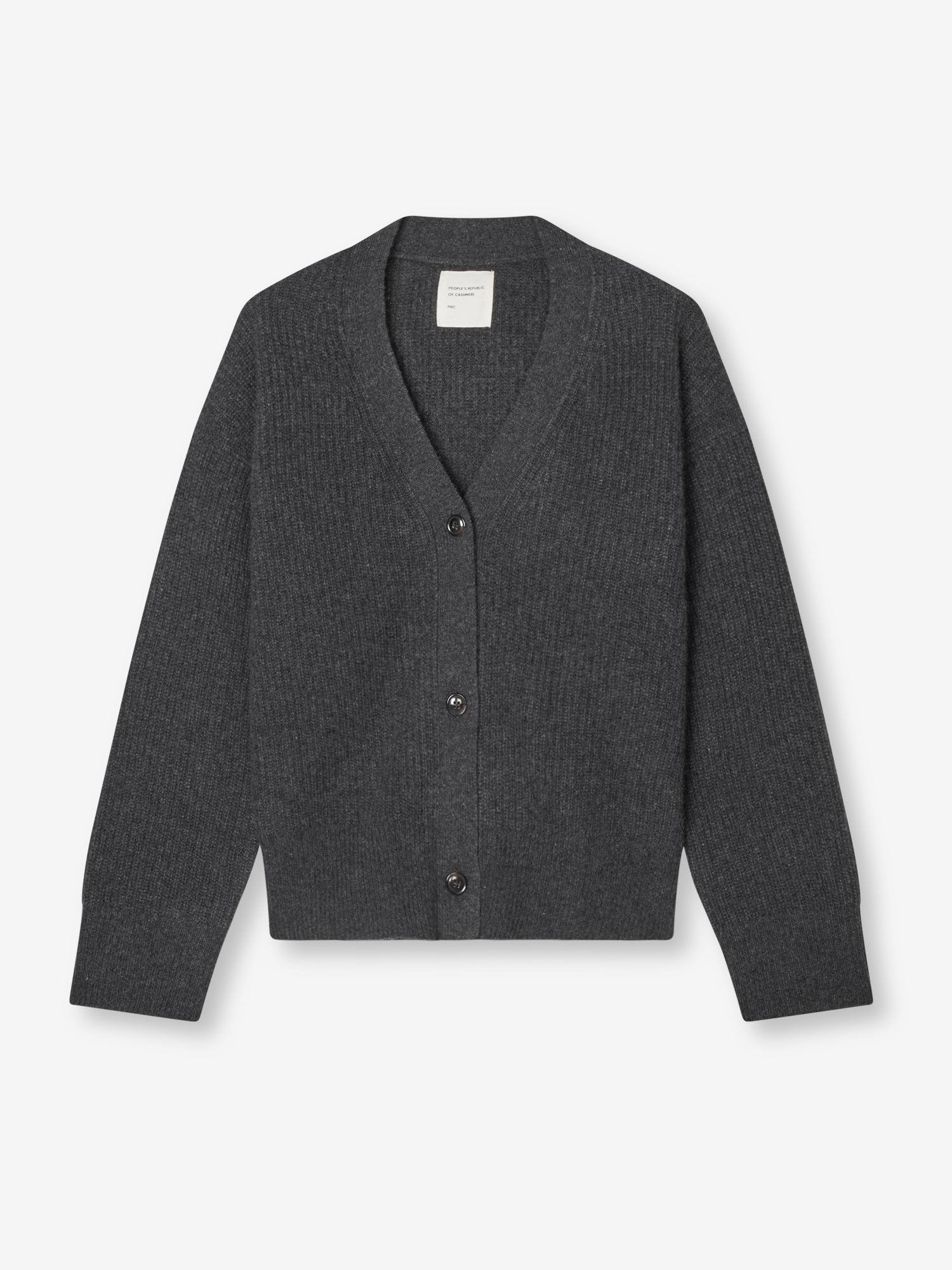 Knitted in 7-gauge cashmere, the Premium Ribbed Cardigan in Dark Grey is crafted from 100% Grade A Inner Mongolian cashmere for exceptional softness and durability. Featuring a luxurious chunky texture and heavy rib detailing, this cardigan combines timeless elegance with cosy comfort. Its relaxed, slightly oversized fit makes it a versatile piece, perfect for layering during cooler months. Designed to resist pilling and hold its shape, it’s a sophisticated addition to any wardrobe, offering both style and warmth season after season.