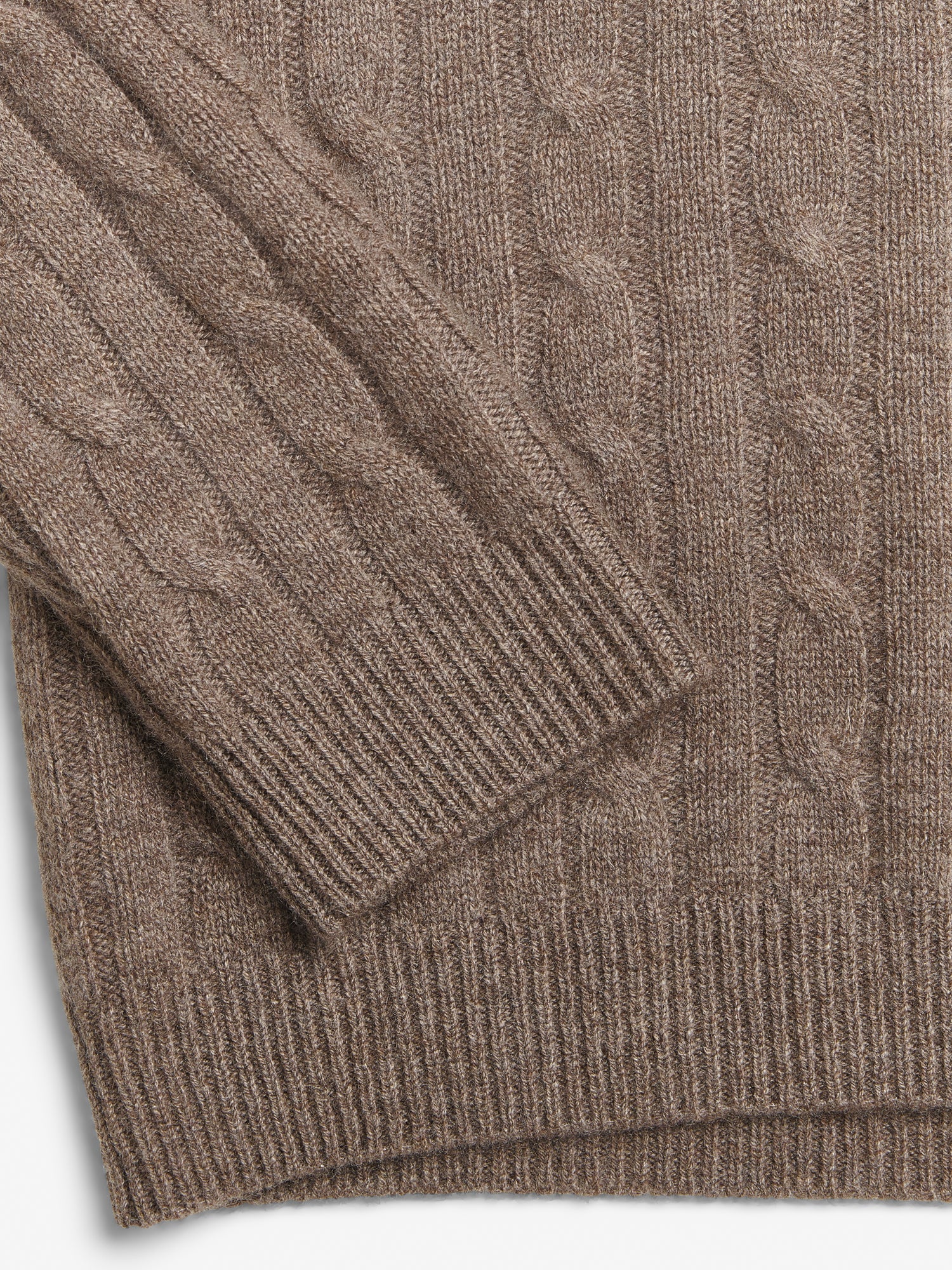 Knitted in 7-gauge cashmere, the Premium Classic Cableknit in Truffle is crafted from 100% Grade A Inner Mongolian cashmere for exceptional softness and durability. Featuring a timeless cable knit pattern and a regular fit, this style offers a cosy yet refined look. Designed to resist pilling and hold its shape, it’s a luxurious piece to wear season after season, adding an elegant touch to any wardrobe.