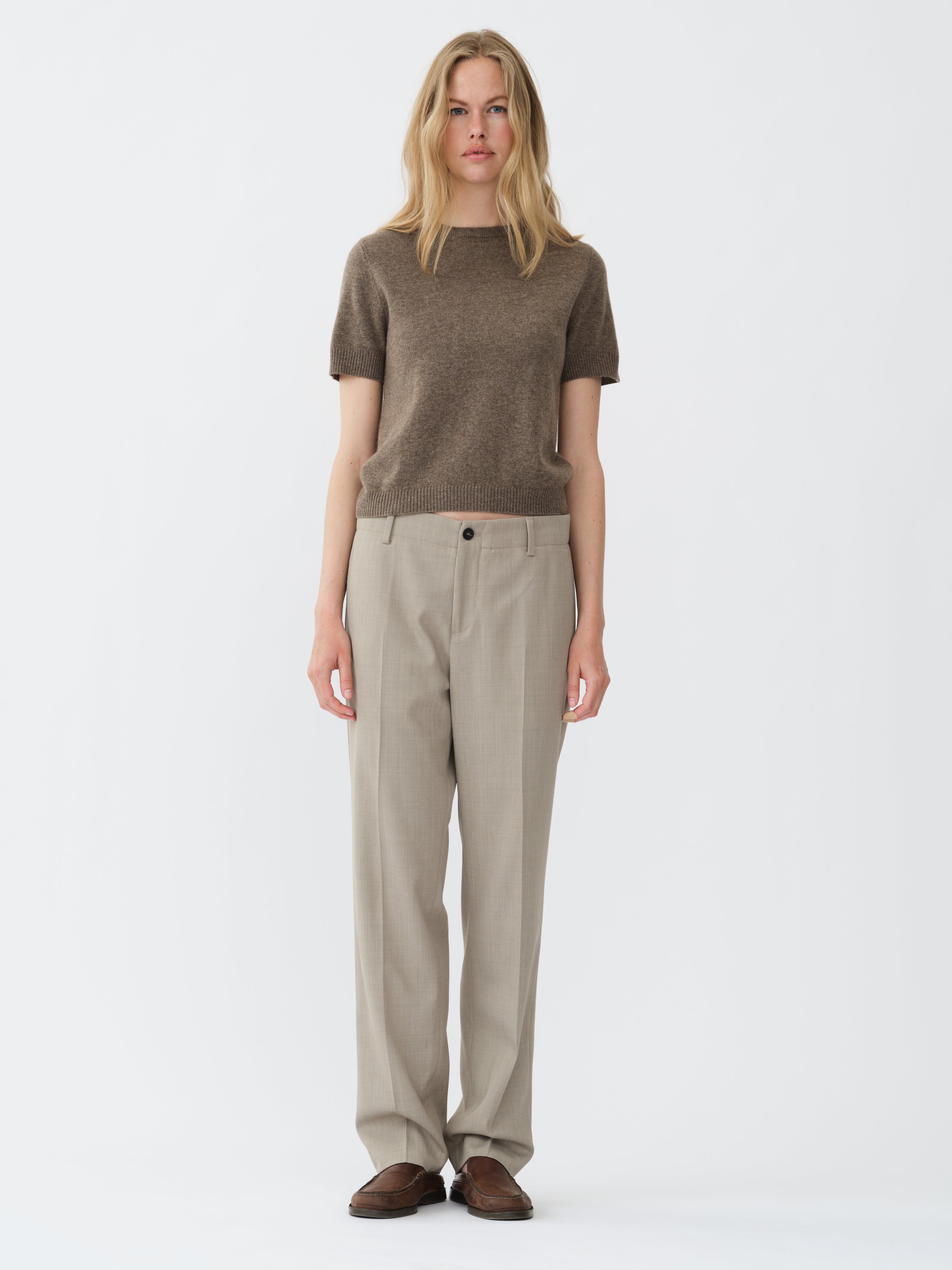 Our Women's Blouse in Truffle is made of 100% premium quality cashmere - Inner Mongolian cashmere (Grade A). It features a laid-back, cropped and boxy silhouette, giving it a relaxed yet sophisticated look, while short sleeves make it perfect for all-year-round wear. Tightly knitted to minimise pilling and retain its shape over time, it's a valuable investment for any wardrobe.
