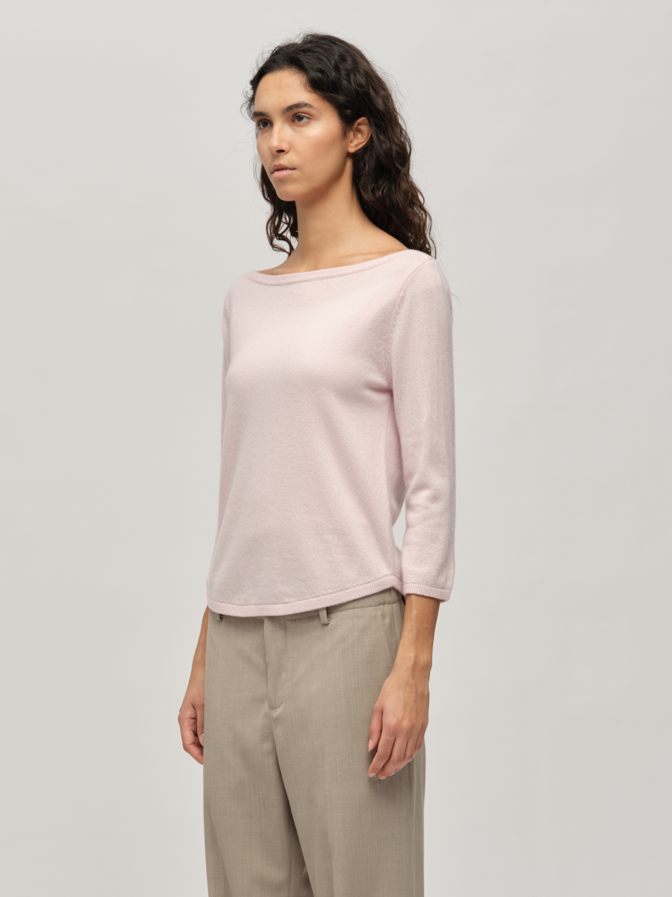 Crafted from 100% cashmere, 10-gauge knit, the Women’s Boat Neck in Baby Pink combines luxurious softness with a lightweight, refined texture. Its classic boat neckline frames the collarbone, adding a touch of effortless elegance to any look. Cut in a regular fit, it balances timeless elegance with everyday comfort, making it a versatile wardrobe essential.