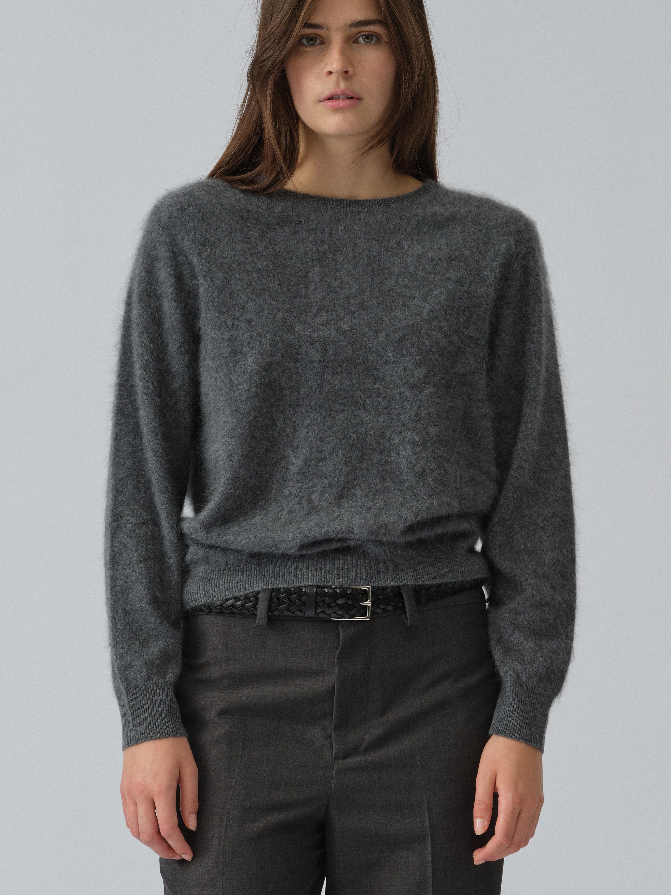 Crafted from 100% Grade A Inner Mongolian cashmere in a 12-gauge knit, the Women’s Brushed Crewneck in Heather Grey offers exceptional softness and warmth. The brushed cashmere finish gives this sweater a luxuriously plush feel, while the classic round neckline, ribbed hem, and cuffs provide a refined, polished look. Designed in a regular fit that stays true to size, it’s a timeless essential that combines comfort with understated elegance.
