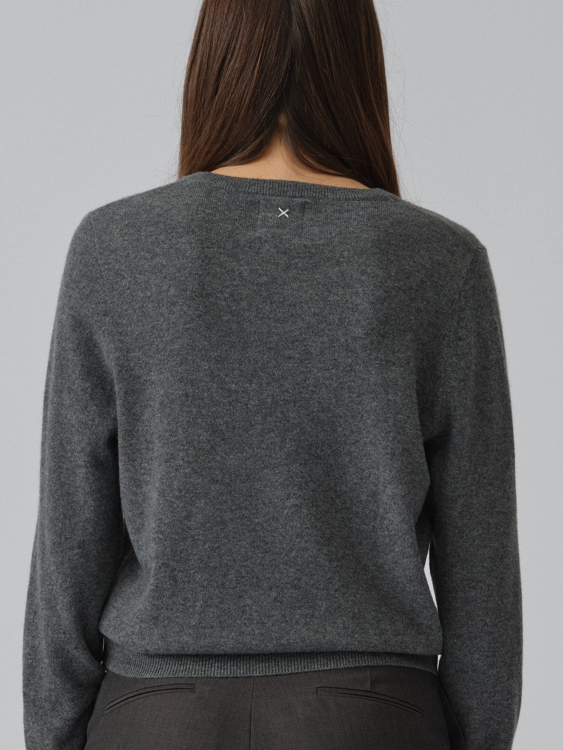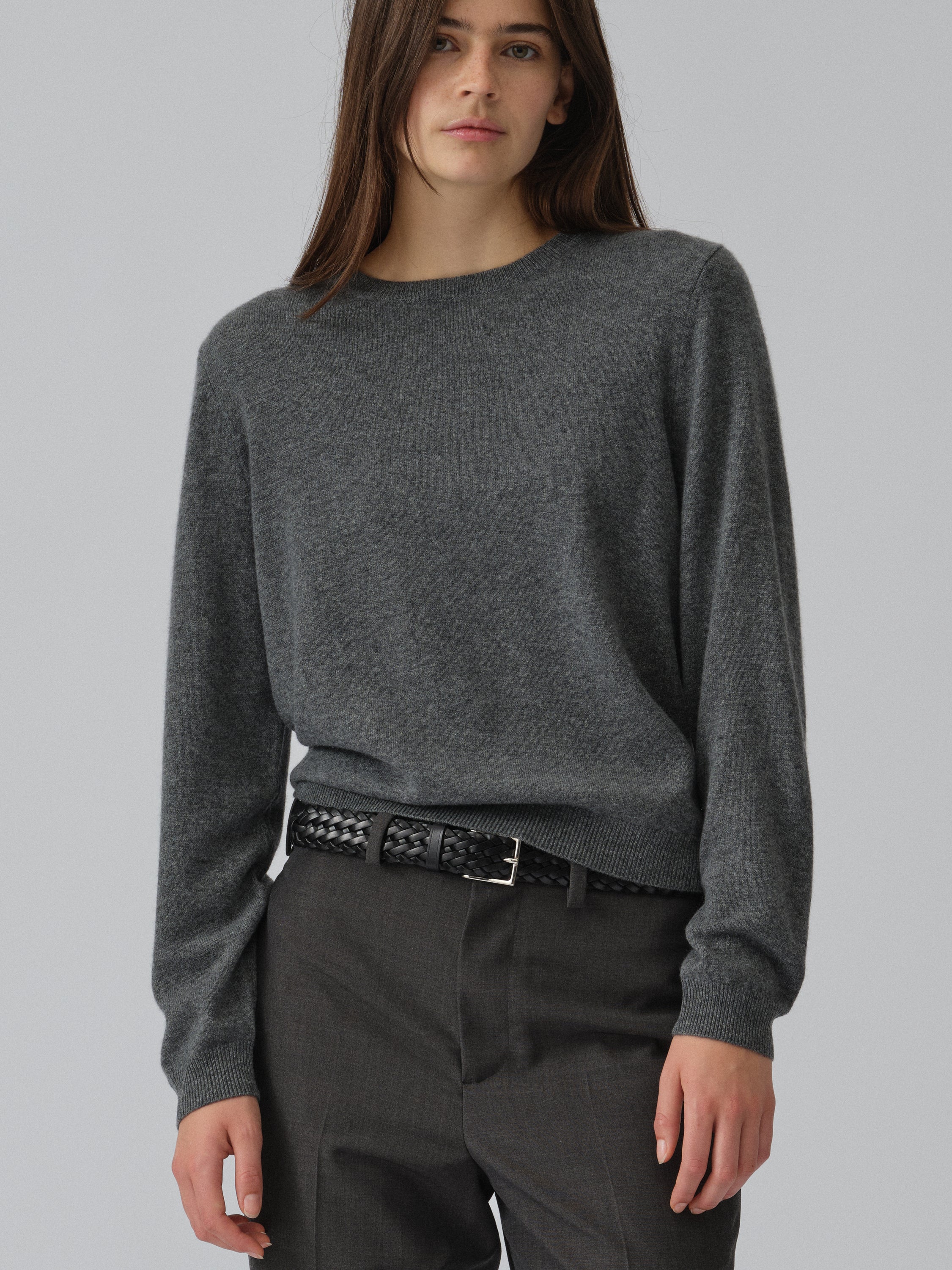 Knitted in 12-gauge cashmere, the Women's Classic Roundneck in Heather Grey is crafted from 100% Grade A Inner Mongolian cashmere for exceptional softness and durability. This essential piece offers timeless simplicity with its regular fit, making it a versatile wardrobe staple. The classic round neckline and slightly dropped shoulders add a subtle touch of sophistication. Designed to resist pilling and hold its shape, it’s a reliable investment for effortless style and comfort season after season.