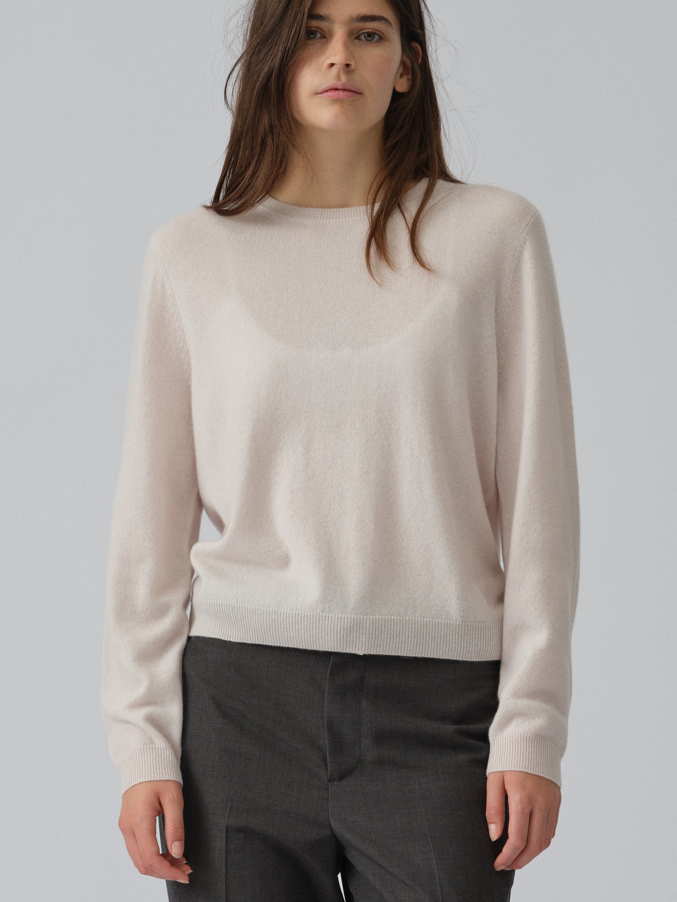 Knitted in 12-gauge cashmere, the Women's Classic Roundneck in Off-White is crafted from 100% Grade A Inner Mongolian cashmere for exceptional softness and durability. This essential piece offers timeless simplicity with its regular fit, making it a versatile wardrobe staple. The classic round neckline and slightly dropped shoulders add a subtle touch of sophistication. Designed to resist pilling and hold its shape, it’s a reliable investment for effortless style and comfort season after season.