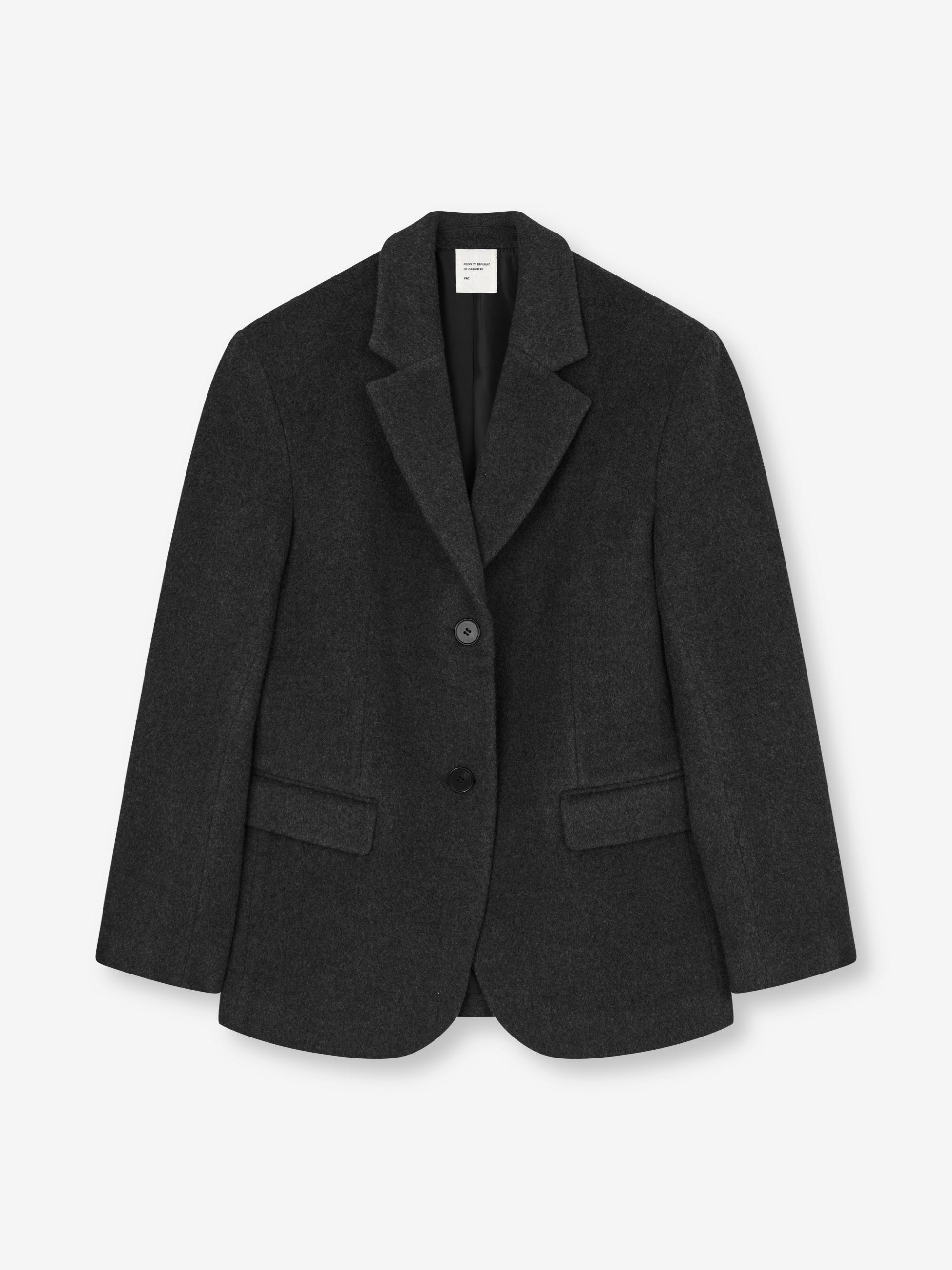 The Women’s Oversized Blazer in Black is cut from a 650g single-face blend of 90% wool and 10% cashmere, offering both structure and softness. Supported by a single front button, it drapes effortlessly over the body to create a relaxed yet refined silhouette. Designed with subtle shoulder shaping and clean lines, this piece serves as a wardrobe staple, elevating both tailored and casual looks.