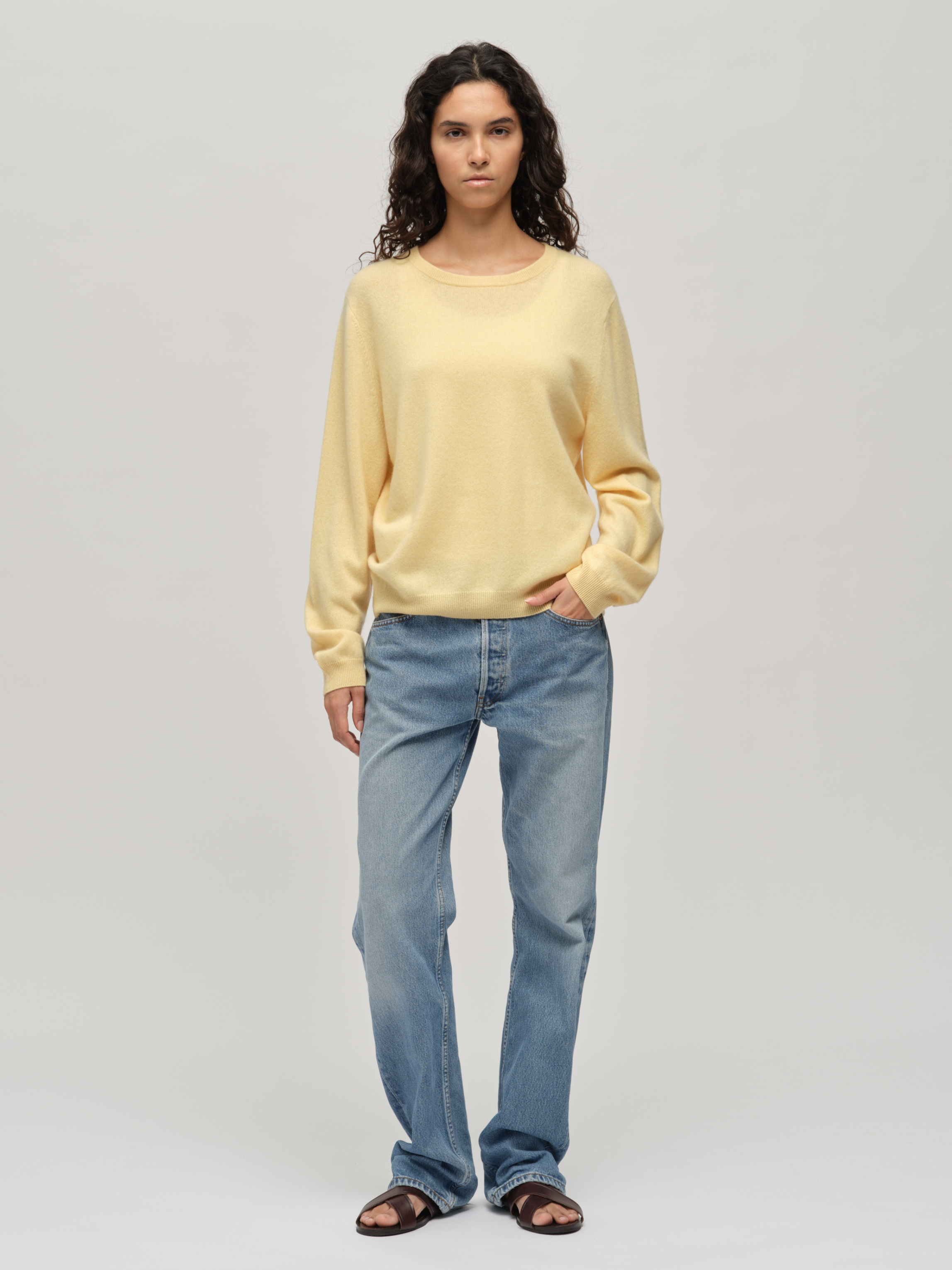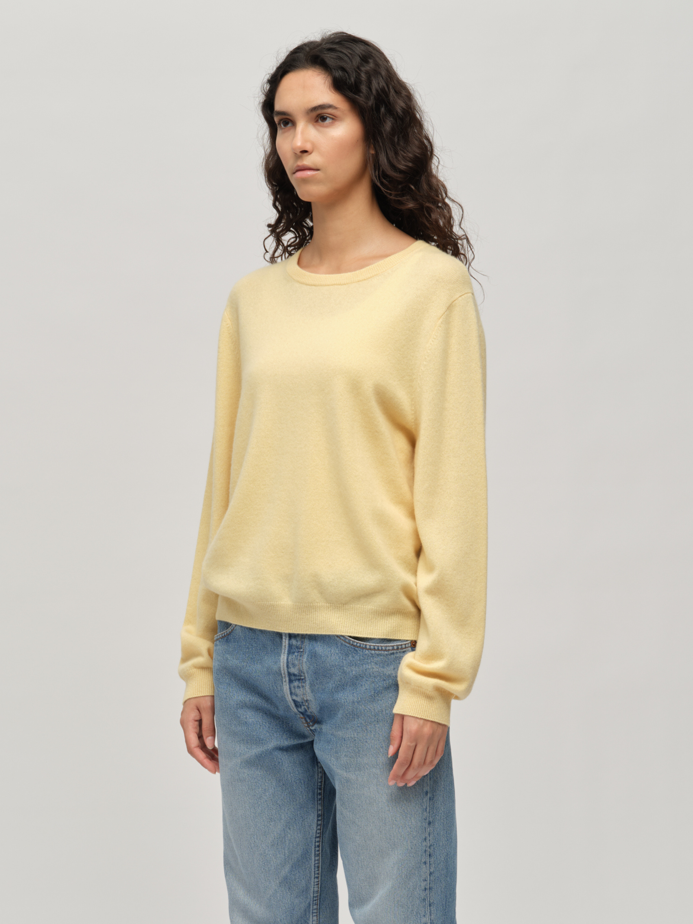 Knitted in 12-gauge cashmere, the Women's Classic Roundneck in Butter is crafted from 100% Grade A Inner Mongolian cashmere for exceptional softness and durability. This essential piece offers timeless simplicity with its regular fit, making it a versatile wardrobe staple. The classic round neckline and slightly dropped shoulders add a subtle touch of sophistication. Designed to resist pilling and hold its shape, it’s a reliable investment for effortless style and comfort season after season.