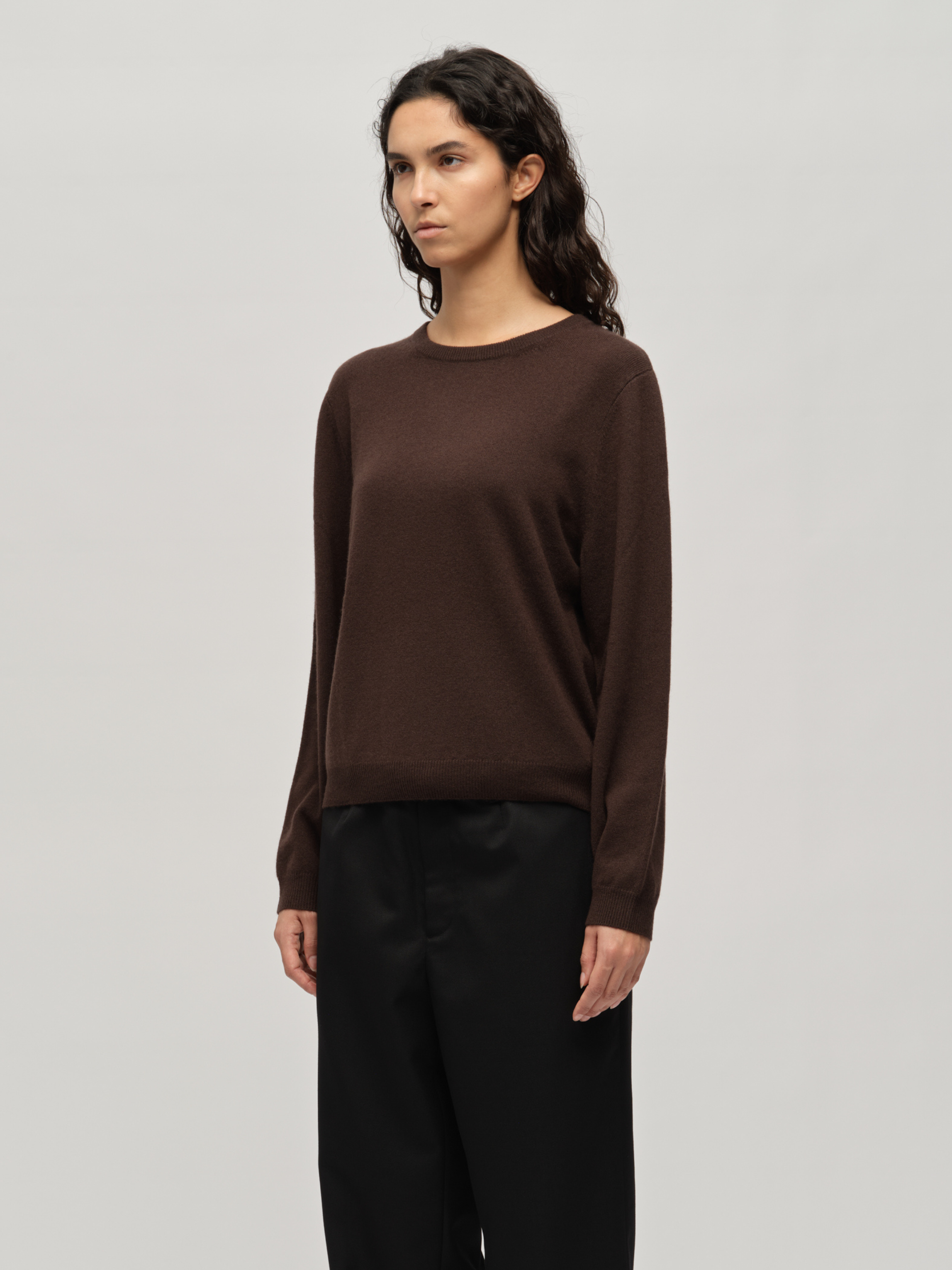 Knitted in 12-gauge cashmere, the Women's Classic Roundneck in Dark Brown is crafted from 100% Grade A Inner Mongolian cashmere for exceptional softness and durability. This essential piece offers timeless simplicity with its regular fit, making it a versatile wardrobe staple. The classic round neckline and slightly dropped shoulders add a subtle touch of sophistication. Designed to resist pilling and hold its shape, it’s a reliable investment for effortless style and comfort season after season.