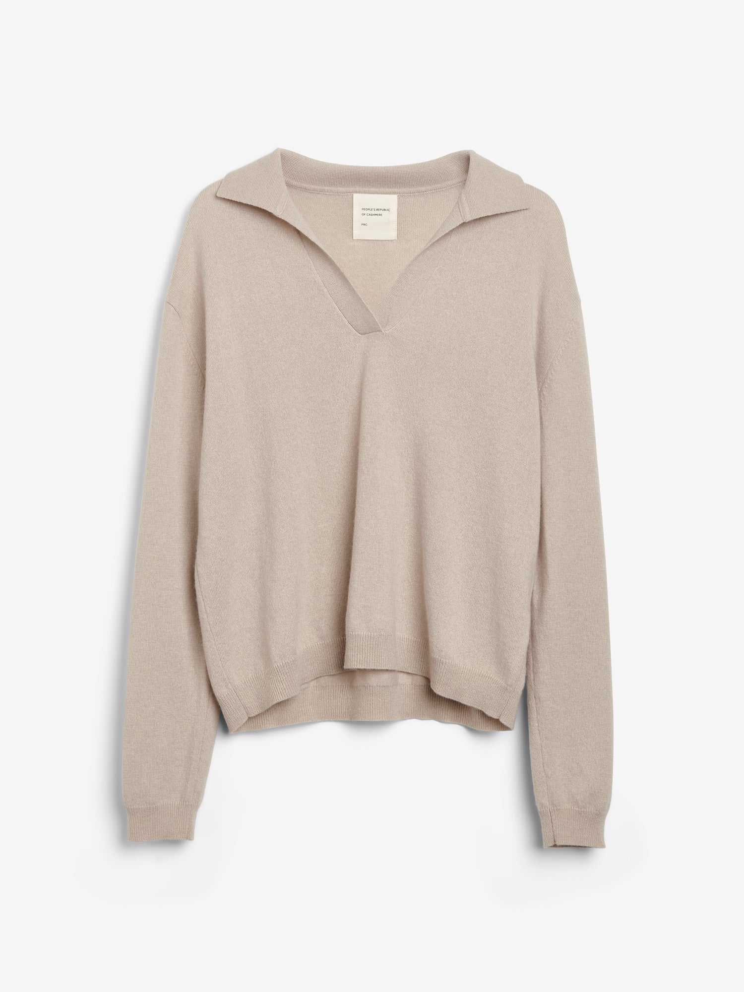 Crafted from 100% Grade A Inner Mongolian cashmere in a 10-gauge knit, the Women's Oversized Collar V-Neck in Trench offers a relaxed, boxy fit and an open collar for effortless style. This versatile piece balances comfort and sophistication, perfect for layering or wearing alone. Designed for everyday elegance with a flattering, laid-back silhouette.