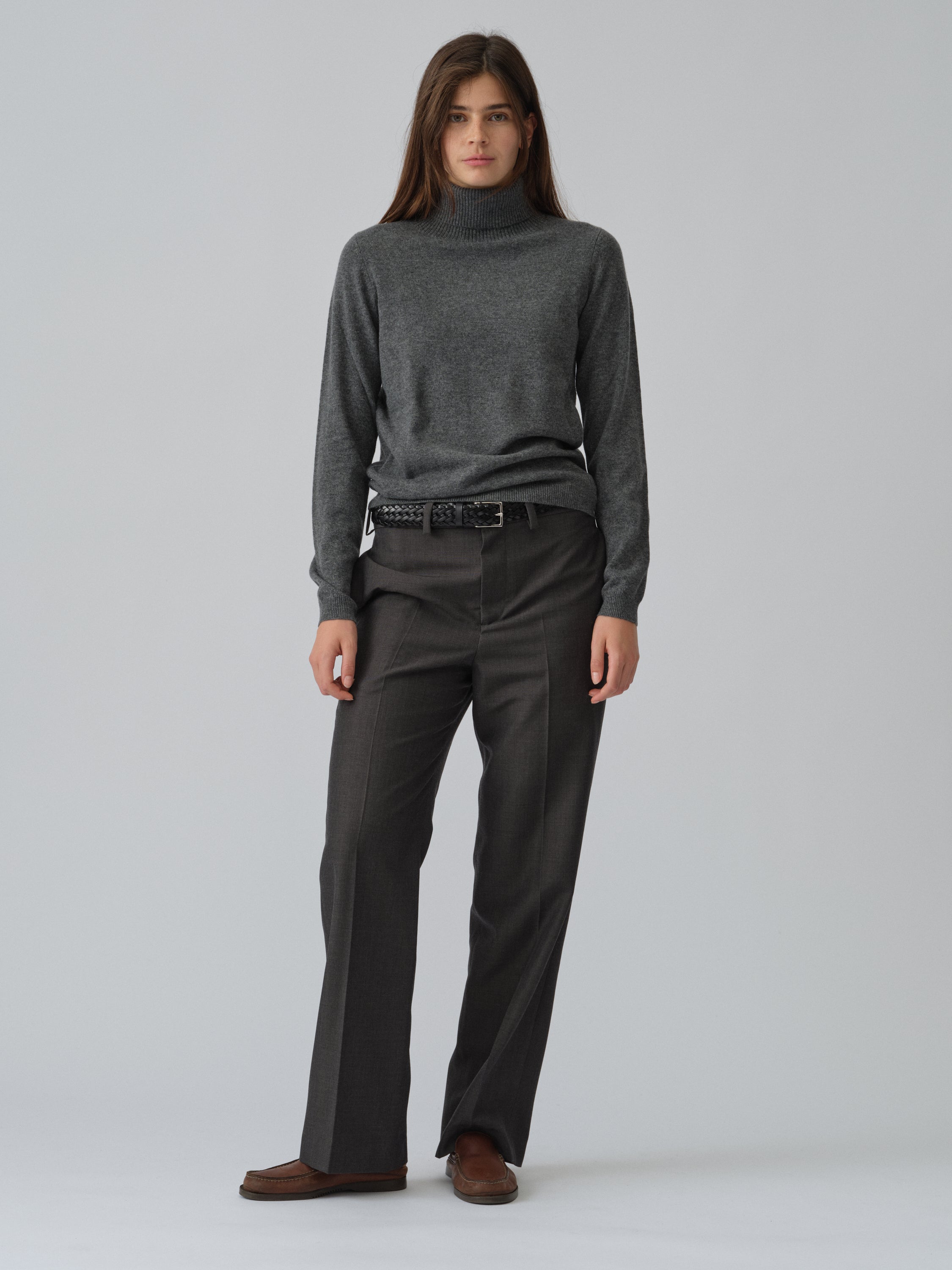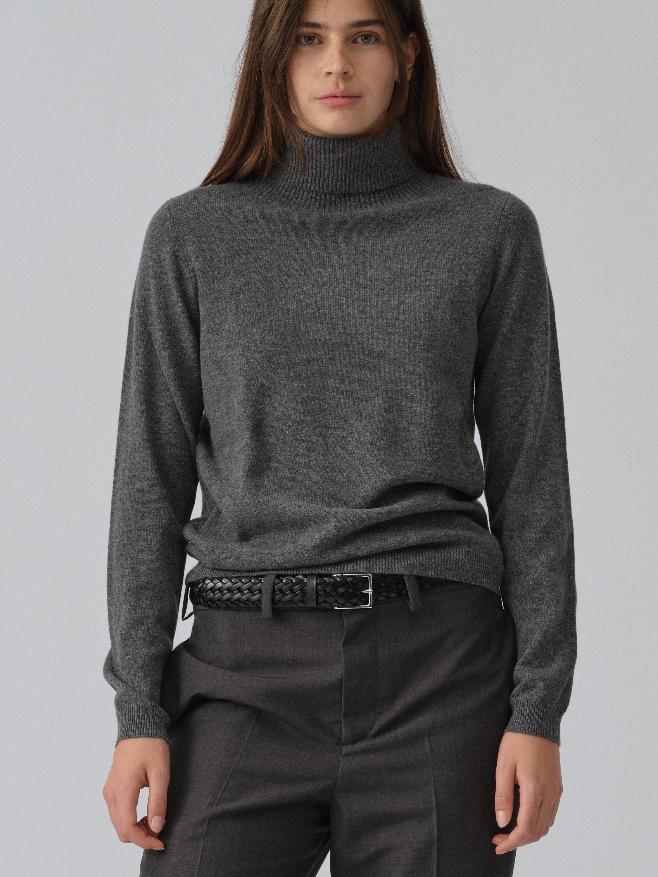 Crafted from 100% Grade A Inner Mongolian cashmere in a 12-gauge knit, this Women’s Turtleneck sweater in Heather Grey offers timeless luxury and exceptional comfort. Featuring a slim fit and a snug, high turtleneck, it’s perfect for layering or wearing alone. Expertly knitted to resist pilling and maintain its shape, this sweater is a lasting wardrobe essential.