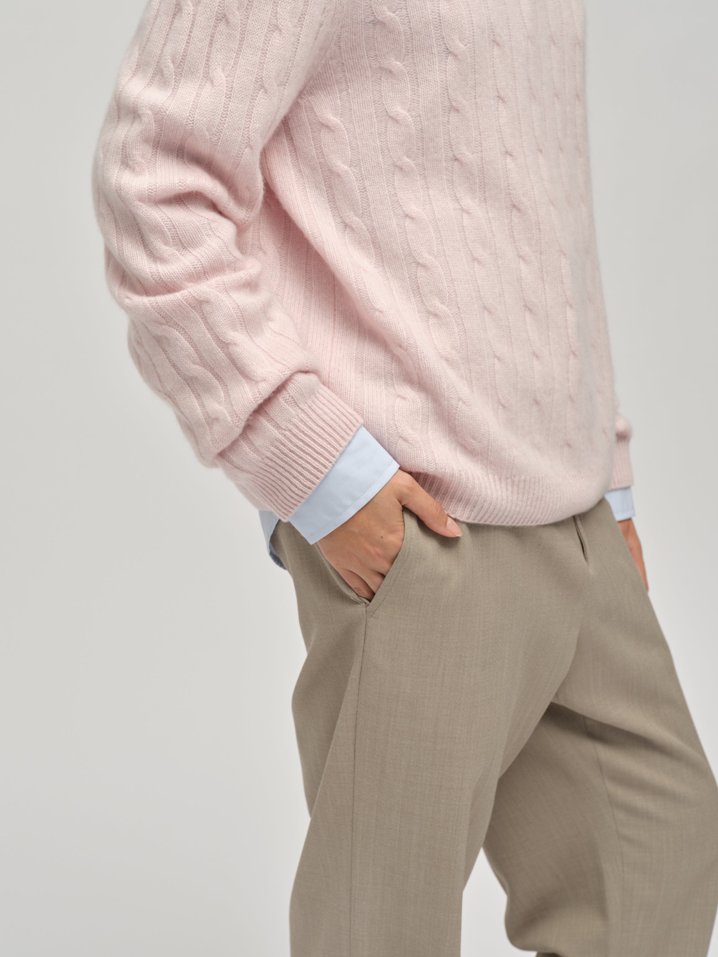 Knitted in 7-gauge cashmere, the Premium Classic Cableknit in Baby Pink is crafted from 100% Grade A Inner Mongolian cashmere for exceptional softness and durability. Featuring a timeless cable knit pattern and a regular fit, this style offers a cosy yet refined look. Designed to resist pilling and hold its shape, it’s a luxurious piece to wear season after season, adding an elegant touch to any wardrobe.