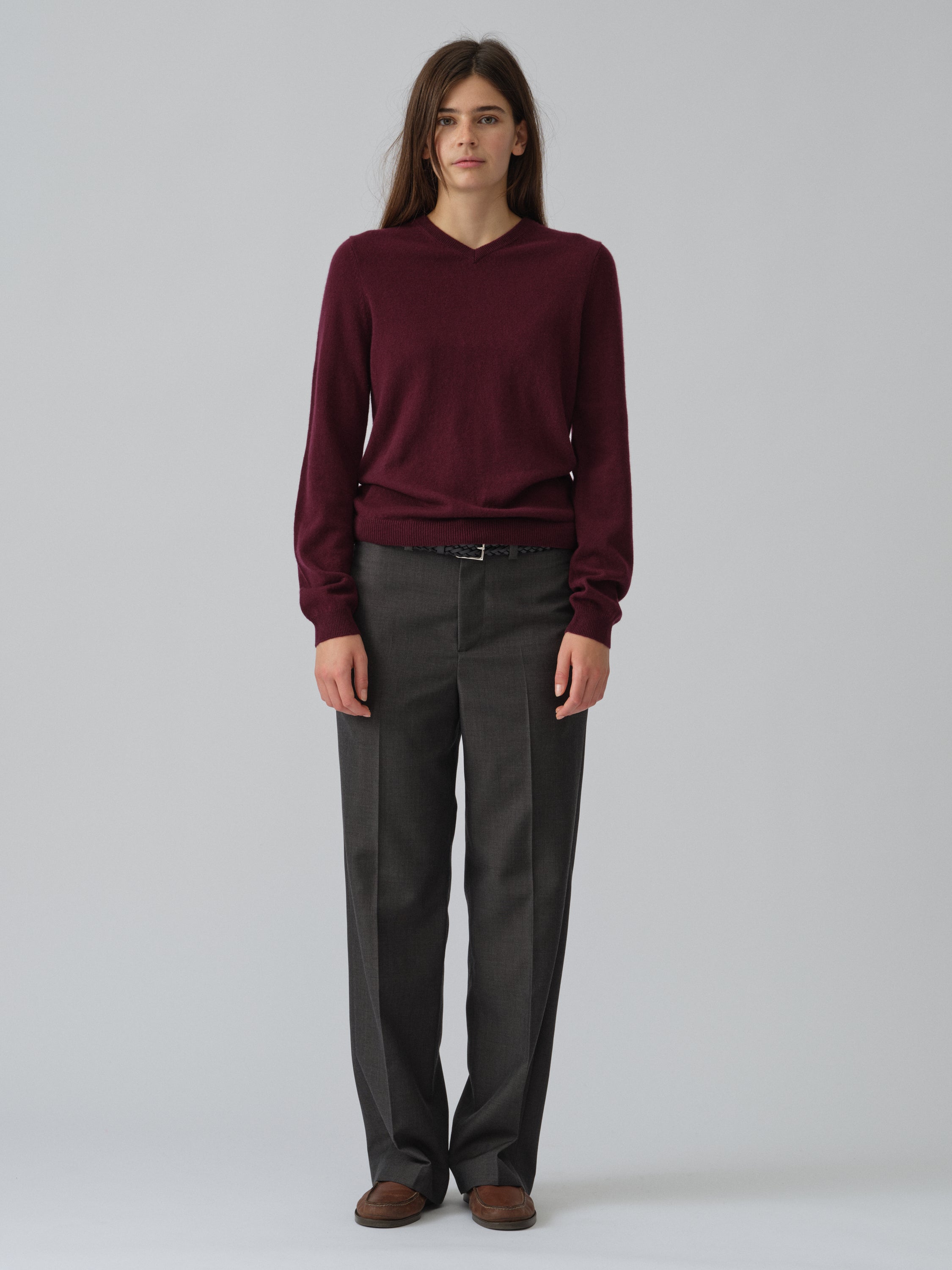 Crafted from 100% Grade A cashmere in a 12-gauge knit, the Women's Fitted 90s V-Neck in Bordeaux features a clean V-neckline and a softly contoured silhouette that flatters without feeling tight. Inspired by 90s minimalism, it brings a modern edge to a timeless shape, perfect for layering or wearing on its own. A versatile piece designed for effortless, everyday elegance.