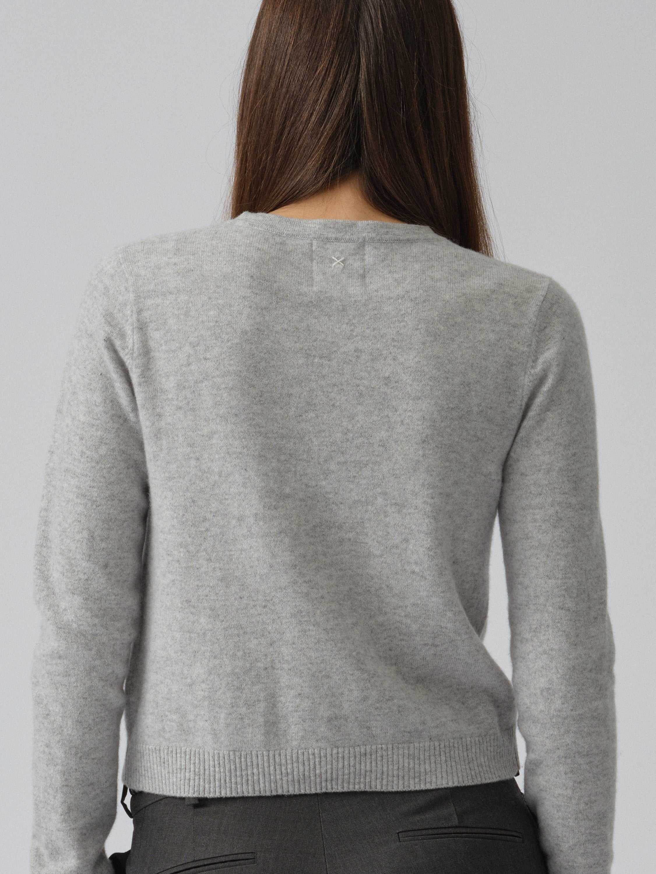 Our Women's O-Cardigan sweater in Ash Grey is made of 100% premium quality cashmere - Inner Mongolian cashmere (Grade A). It is a long-awaited timeless piece that combines comfort and luxury. A very classic, fitted cardigan with a snug round neckline, made from 12 gauge cashmere. Tightly knitted to minimize pilling and retain its shape over time, it's a valuable investment for any wardrobe.