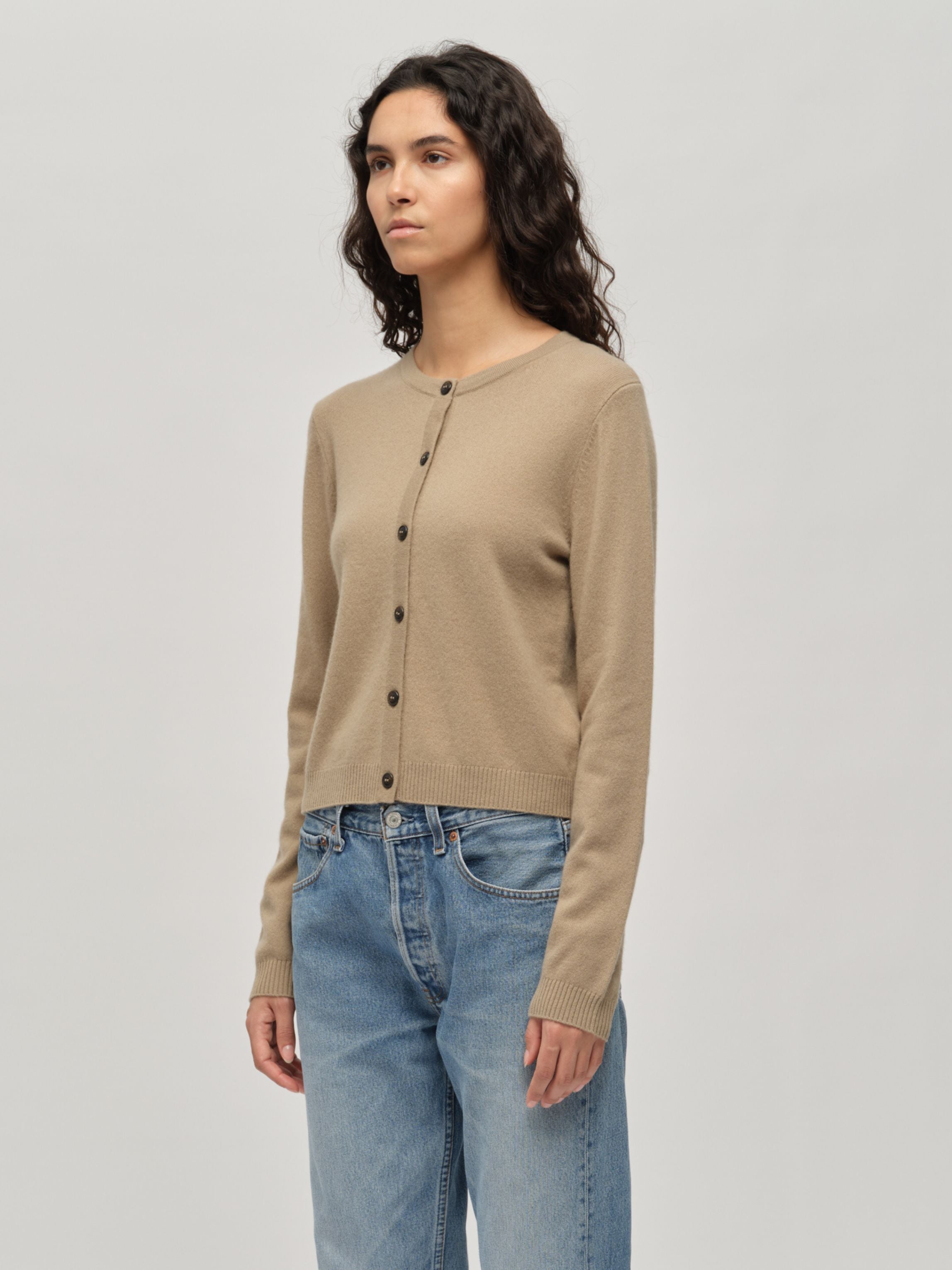 Crafted from 100% Grade A Inner Mongolian cashmere in a 12-gauge knit, the Women's O-Cardigan in Taupe is a timeless wardrobe essential. This classic, fitted cardigan features a neat round neckline and a flattering silhouette that combines comfort with understated luxury. Expertly knitted to resist pilling and maintain its shape, it is a versatile piece designed to be worn and cherished season after season.